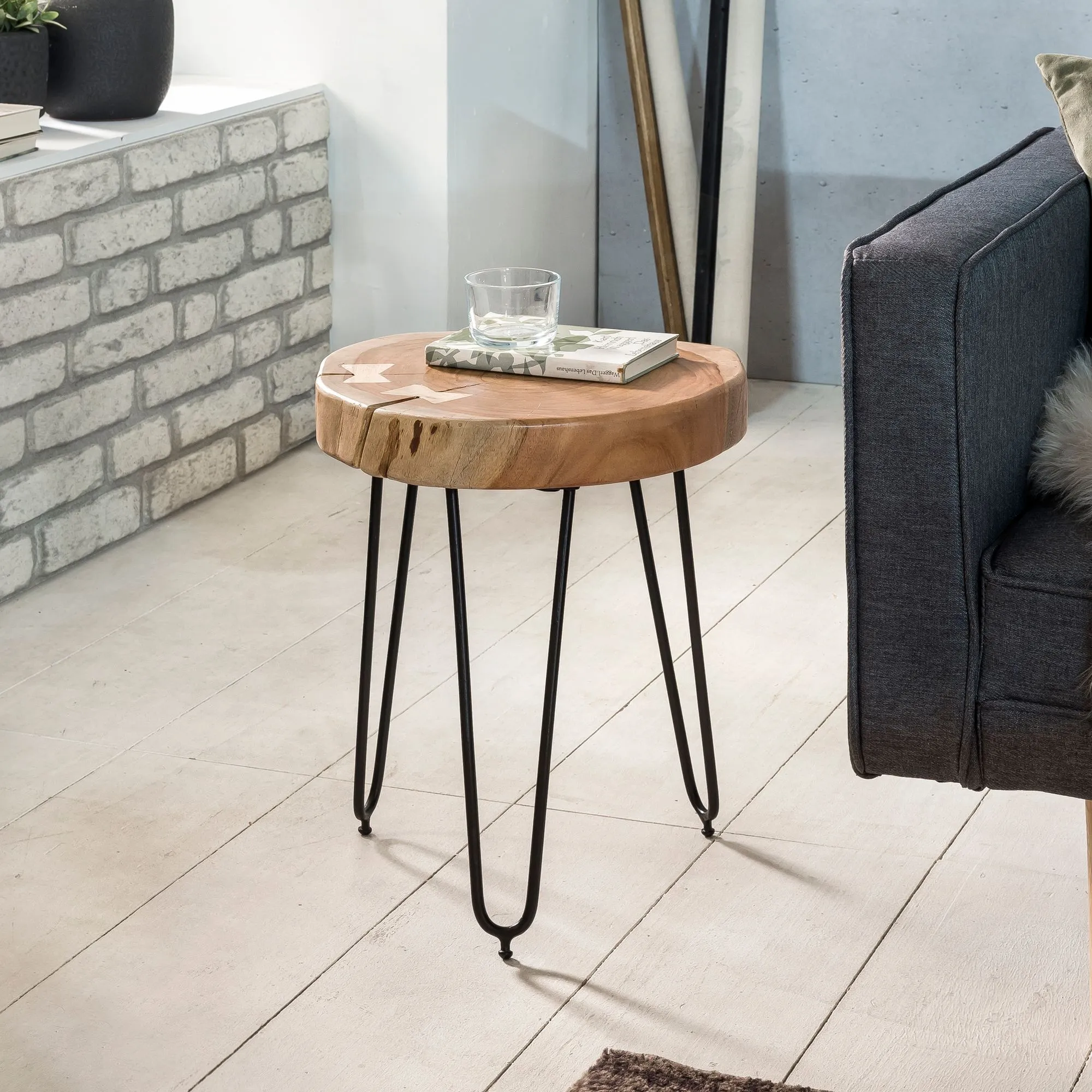 tinkaro runder Beistelltisch BORAKE Massivholz Akazie 012814 Sofatisch kleine Konsole Braun