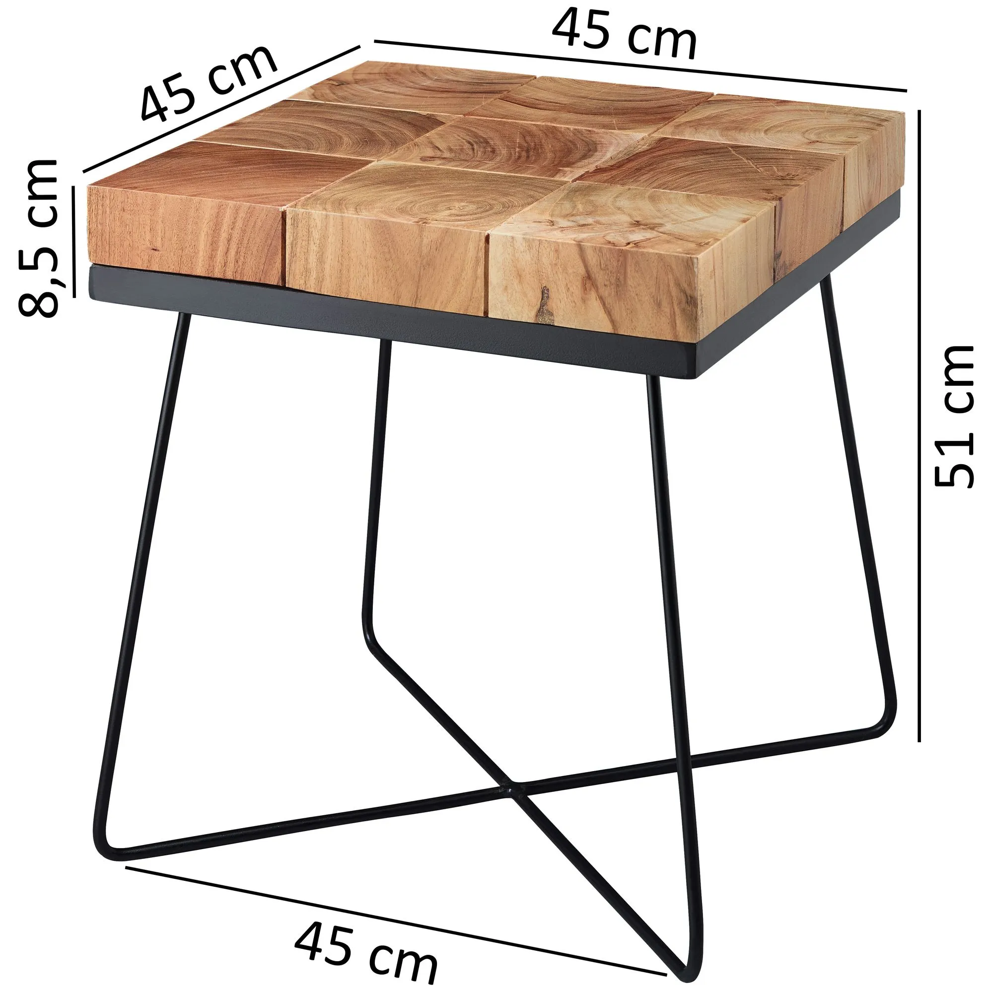 tinkaro eckiger Beistelltisch HILDEGARD Akazie Massivholz 012679 Sofatisch Anstelltisch Braun