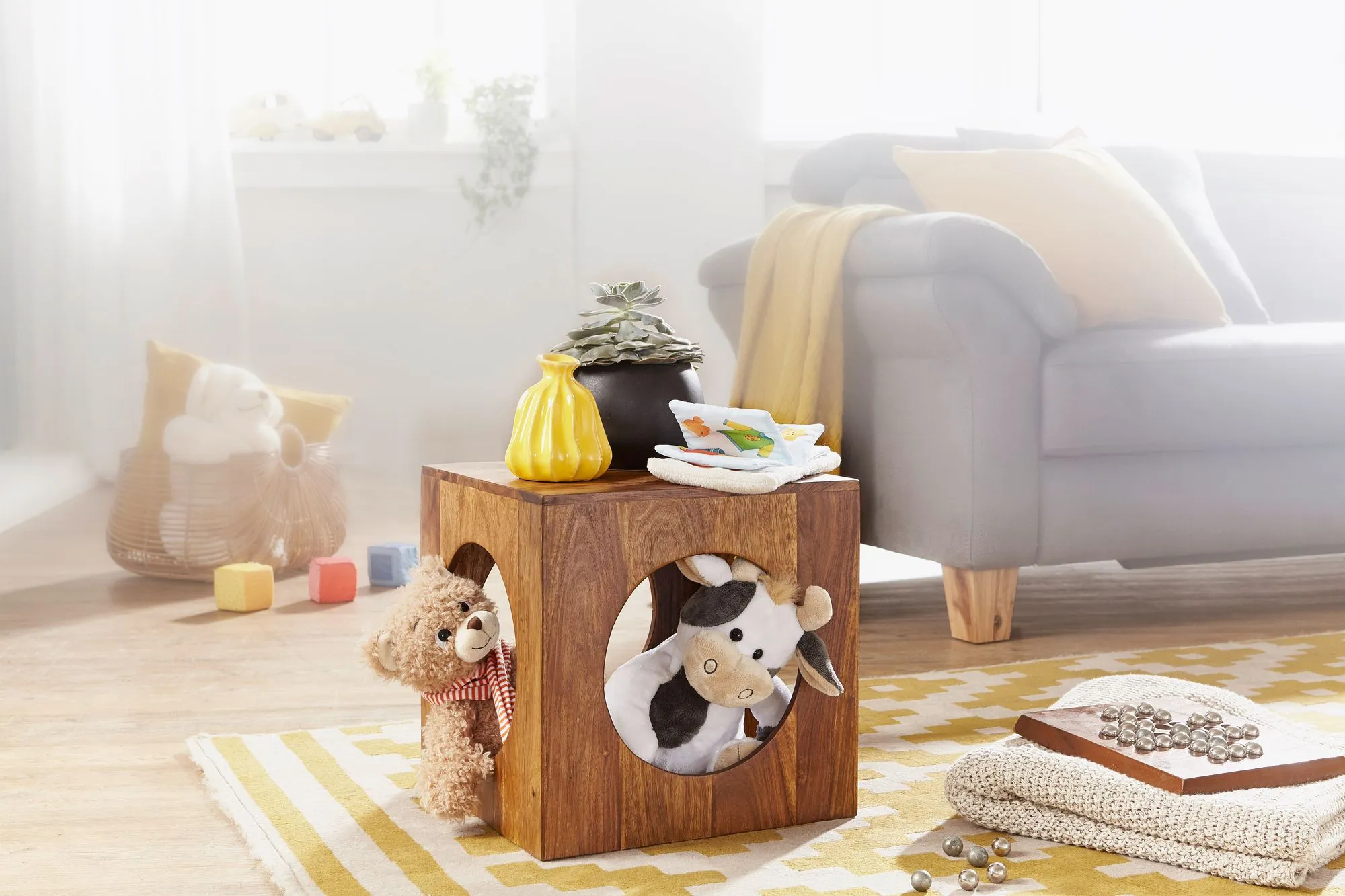 tinkaro quadratischer Beistelltisch JULIA Massivholz Sheesham 012639 Wohnzimmertisch Aufbewahrungsbox Braun