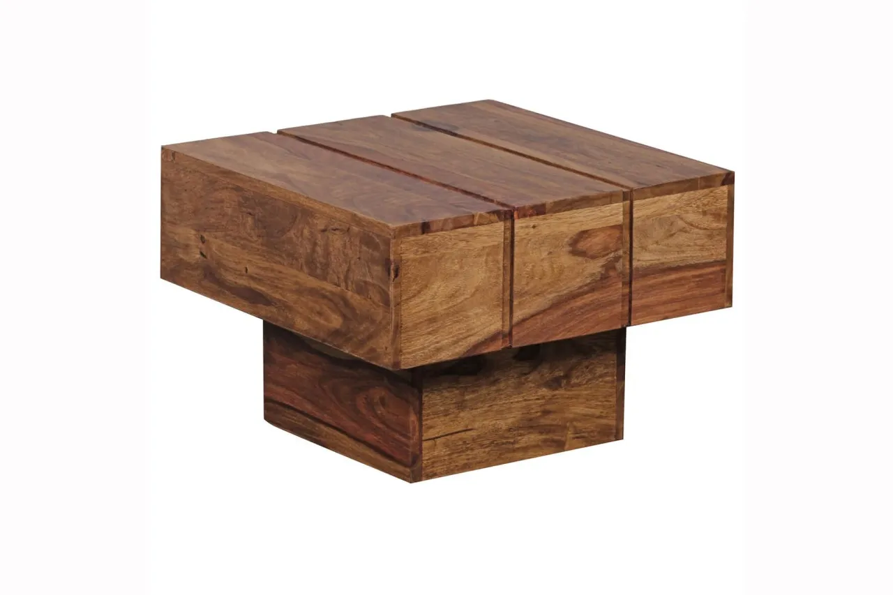 tinkaro Beistelltisch quadratisch STEFANO Massivholz Sheesham Wohnzimmertisch Braun