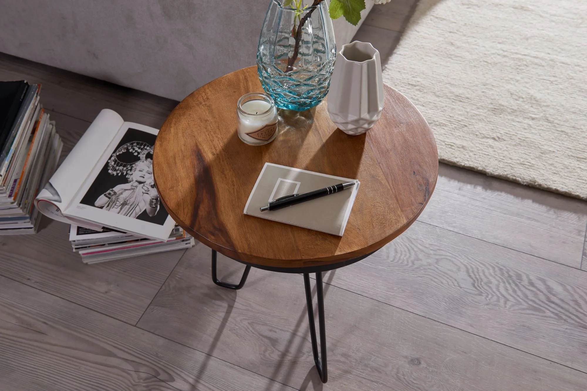 tinkaro runder Beistelltisch ADIS Sheesham Holz 012702 Couchtisch Wohnzimmertisch Braun