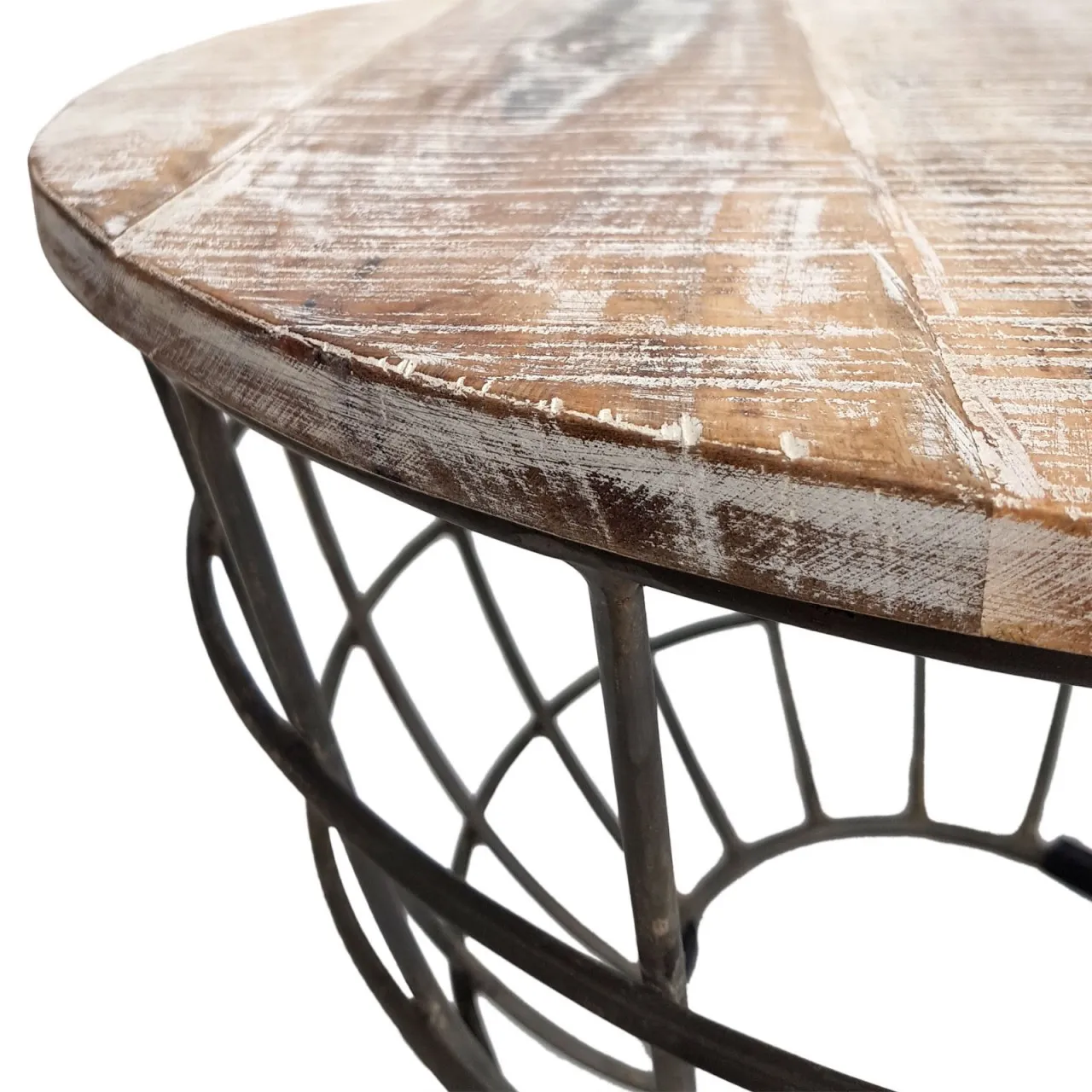 tinkaro Beistelltisch rund KETIL Altholz/Eisen Couchtisch Weiß gekälkt