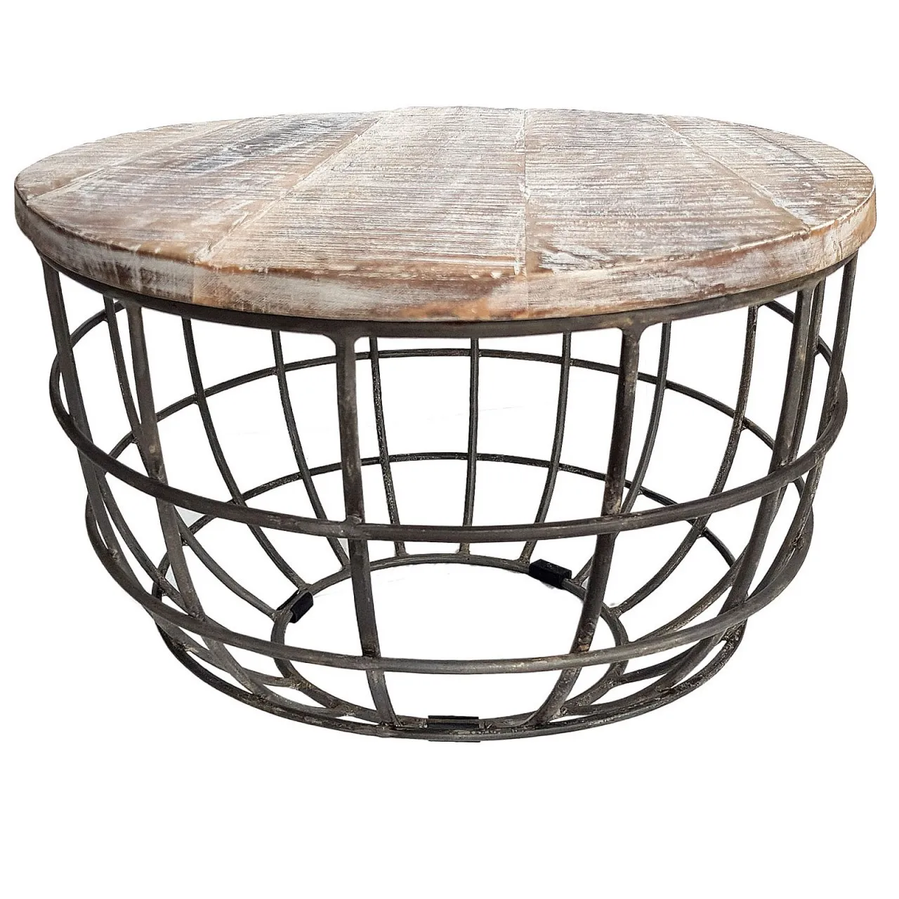 tinkaro runder Beistelltisch KETIL Altholz/Eisen 900191 Couchtisch Wohnzimmertisch Weiß gekälkt