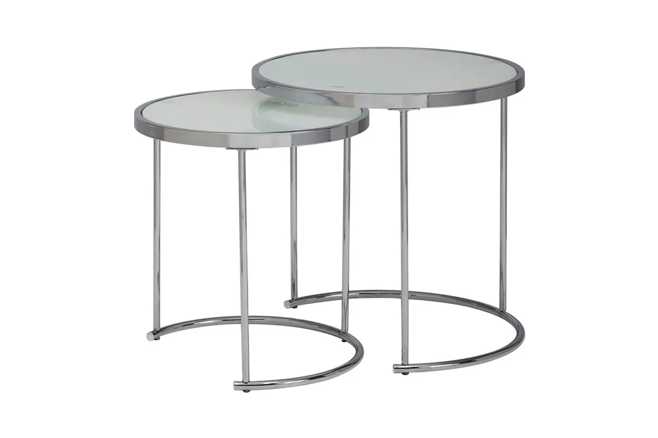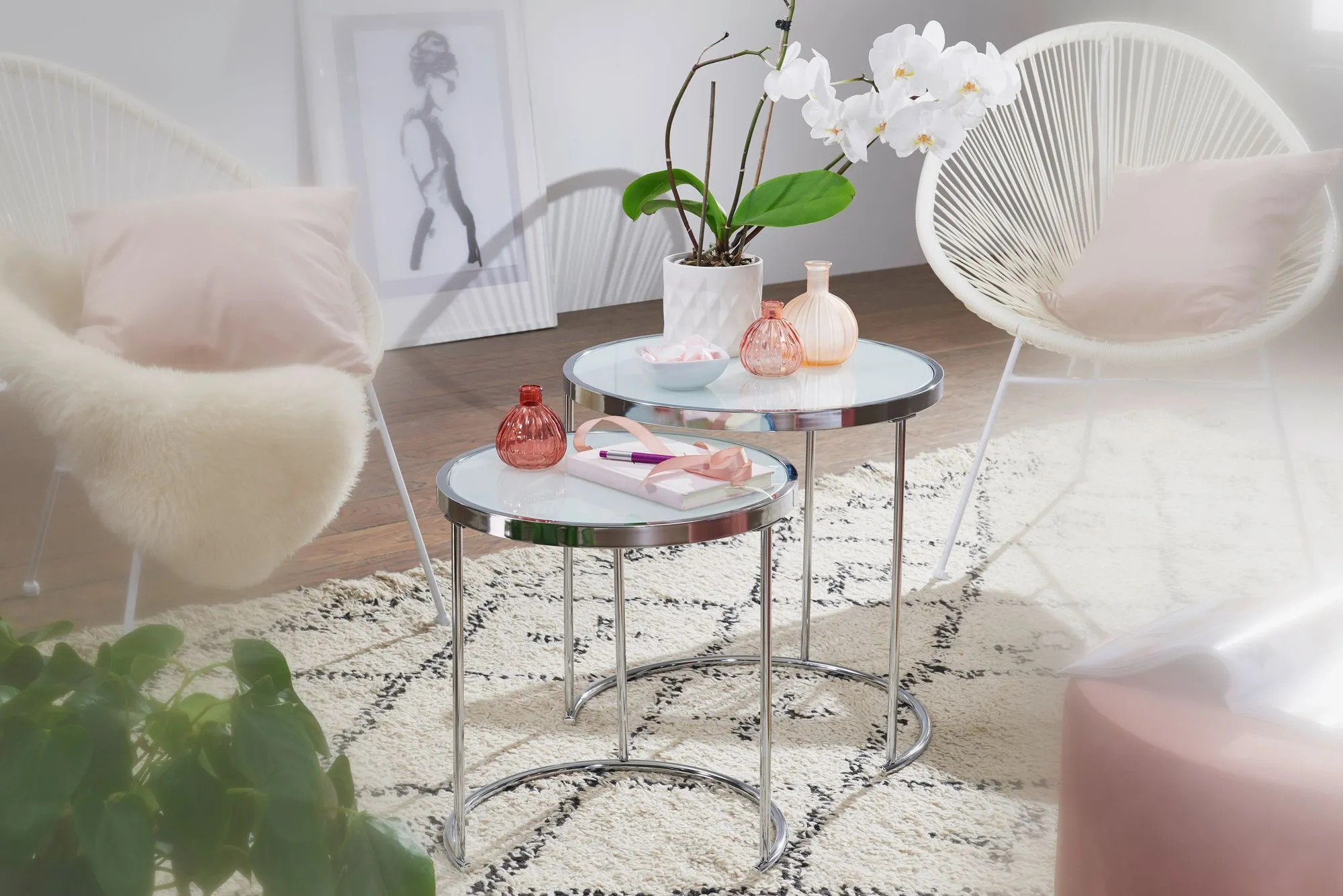 tinkaro Couchtisch rund SILA Sofatisch 013133 Set Weiß Silber Glas Metall Beistelltisch