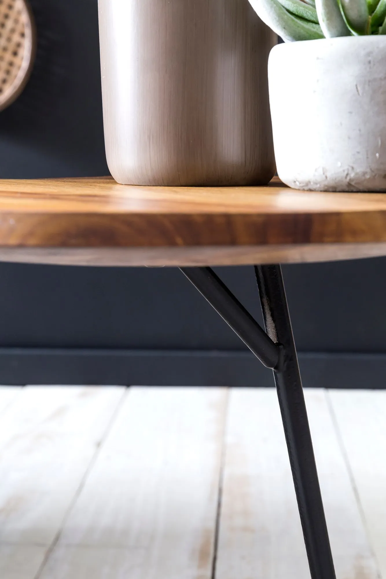 - Materialmix aus naturbelassenem Holz und robustem Metall