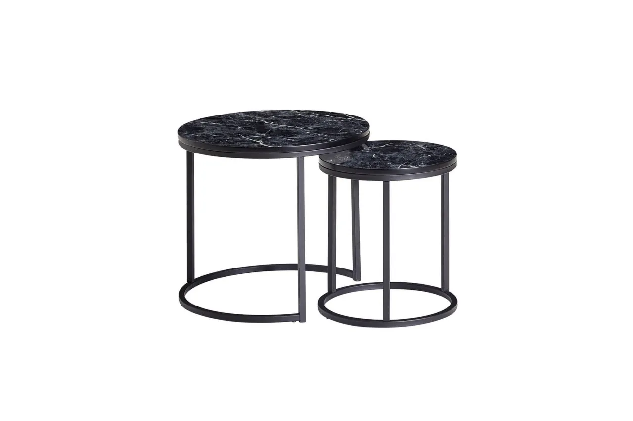 tinkaro Couchtisch Set rund EVIN Marmor Optik Sofatisch 013213 schwarz Metalltisch Wohnzimmer