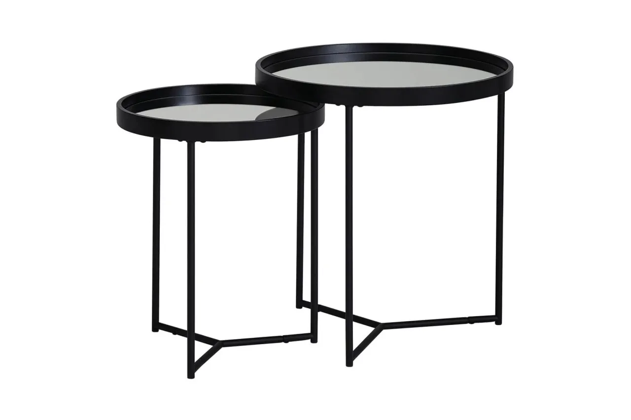 tinkaro Sofatisch Set rund ISRA Schwarz verspiegelt Satztisch Wohnzimmertisch 2er Set