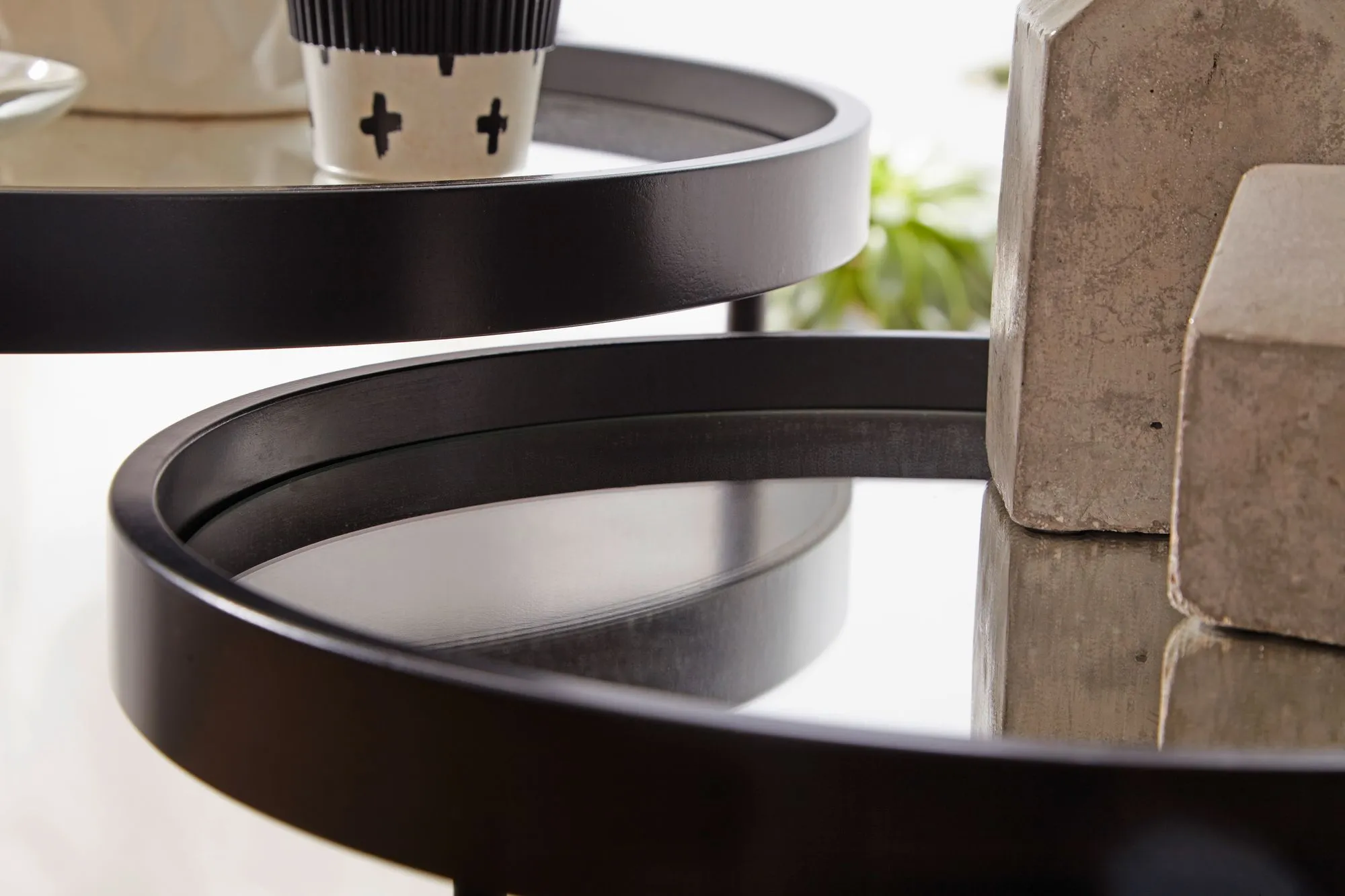 tinkaro Beistelltisch Set rund ISRA Schwarz verspiegelt Satztisch Couchtische