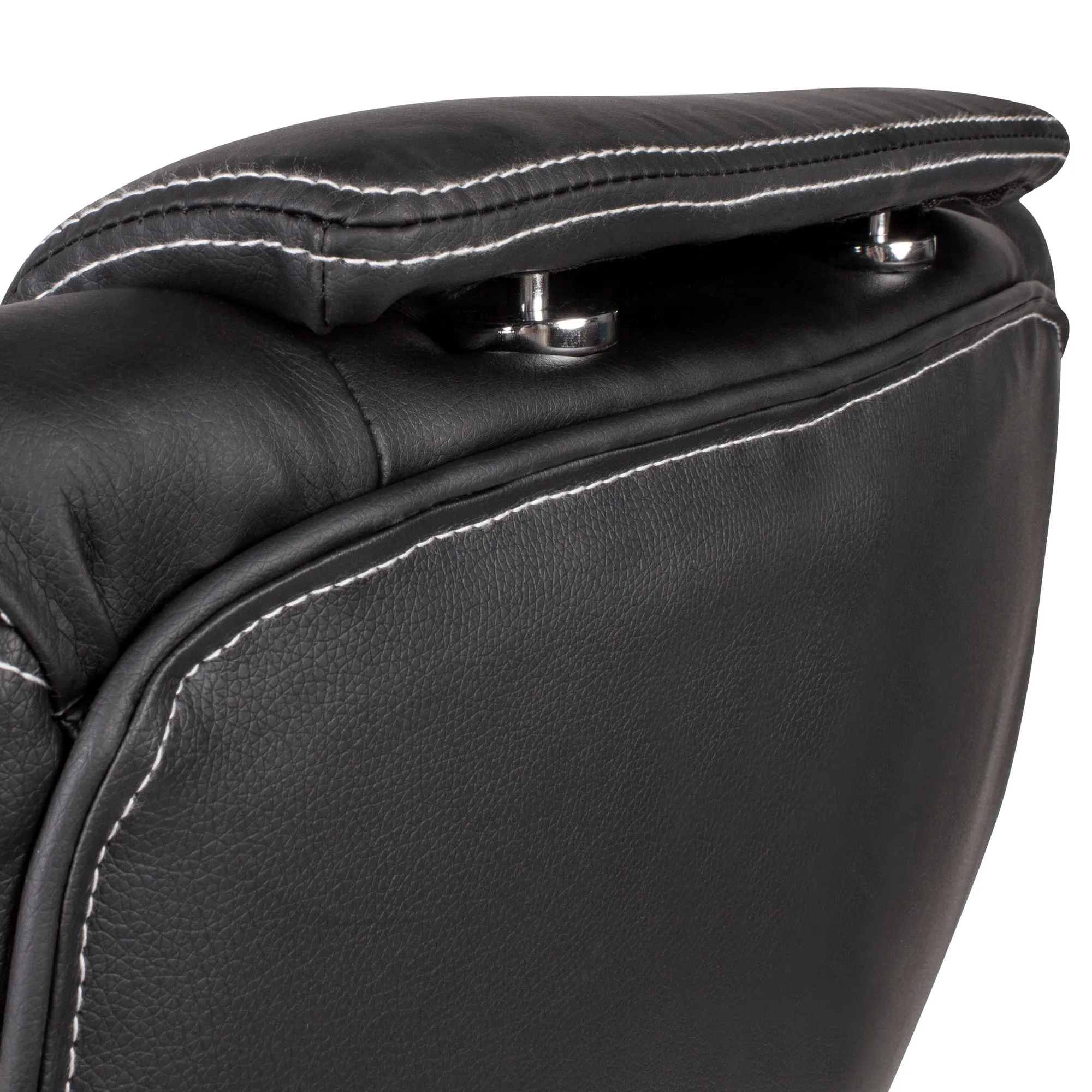 - Weiße Kontrastnähte runden das Design des schwarzen Bürostuhls perfekt ab