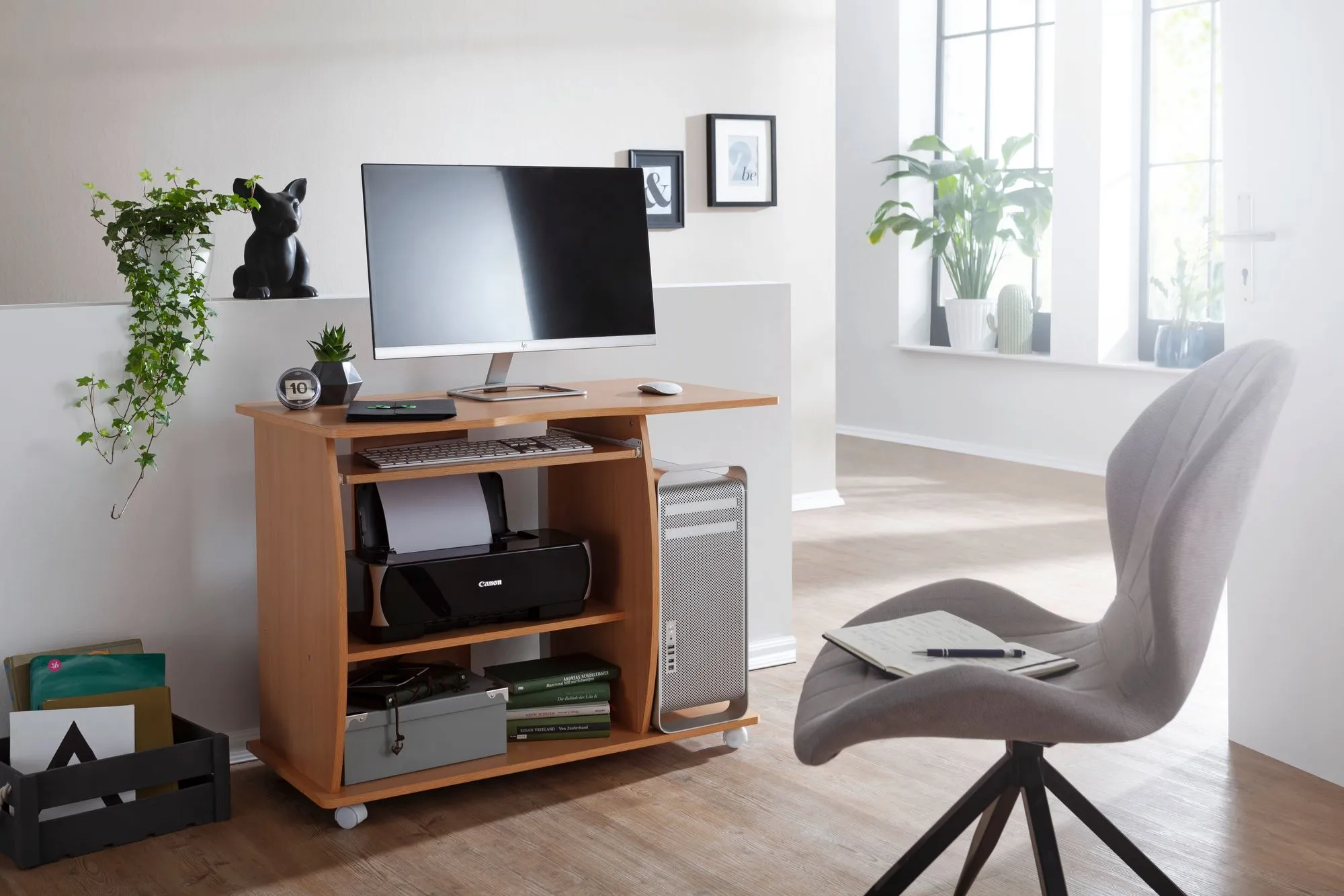 tinkaro eckiger Computertisch BARZIDA Holz 012802 Schreibtisch PC-Tisch Braun