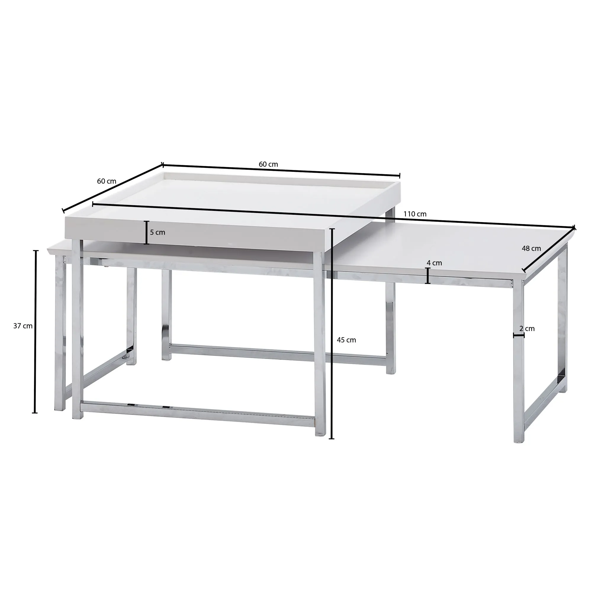 - Farbe: Tischplatten: Weiß / Gestelle: Silbern