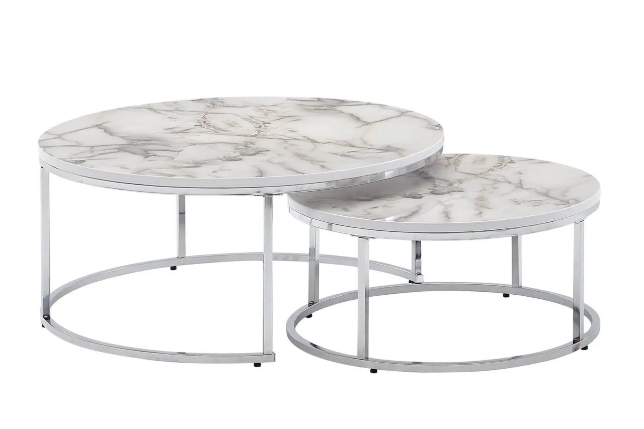 tinkaro runde Couchtisch 2er-Set FARID Holz 013273 Wohnzimmertische Sofatische Weiß Marmor Optik