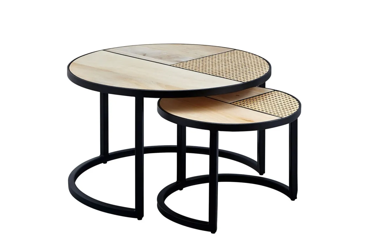 tinkaro Couchtisch 2er-Set rund FEDRA Rattan naturbelassen & Mango Massivholz Satztische Braun