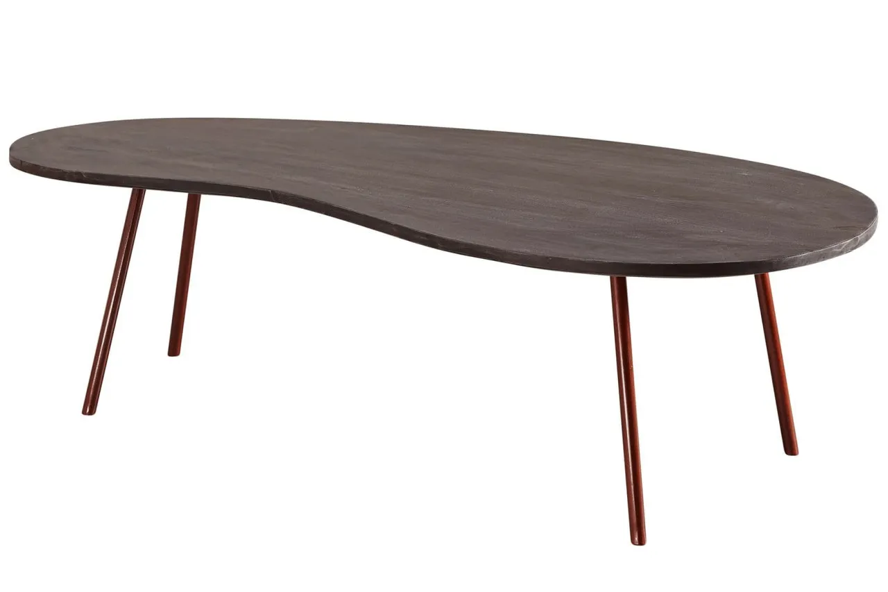 tinkaro nierenförmiger Couchtisch VALERIE Akazie Massivholz mit Metallbeinen Kupfer Wohnzimmertisch Grau