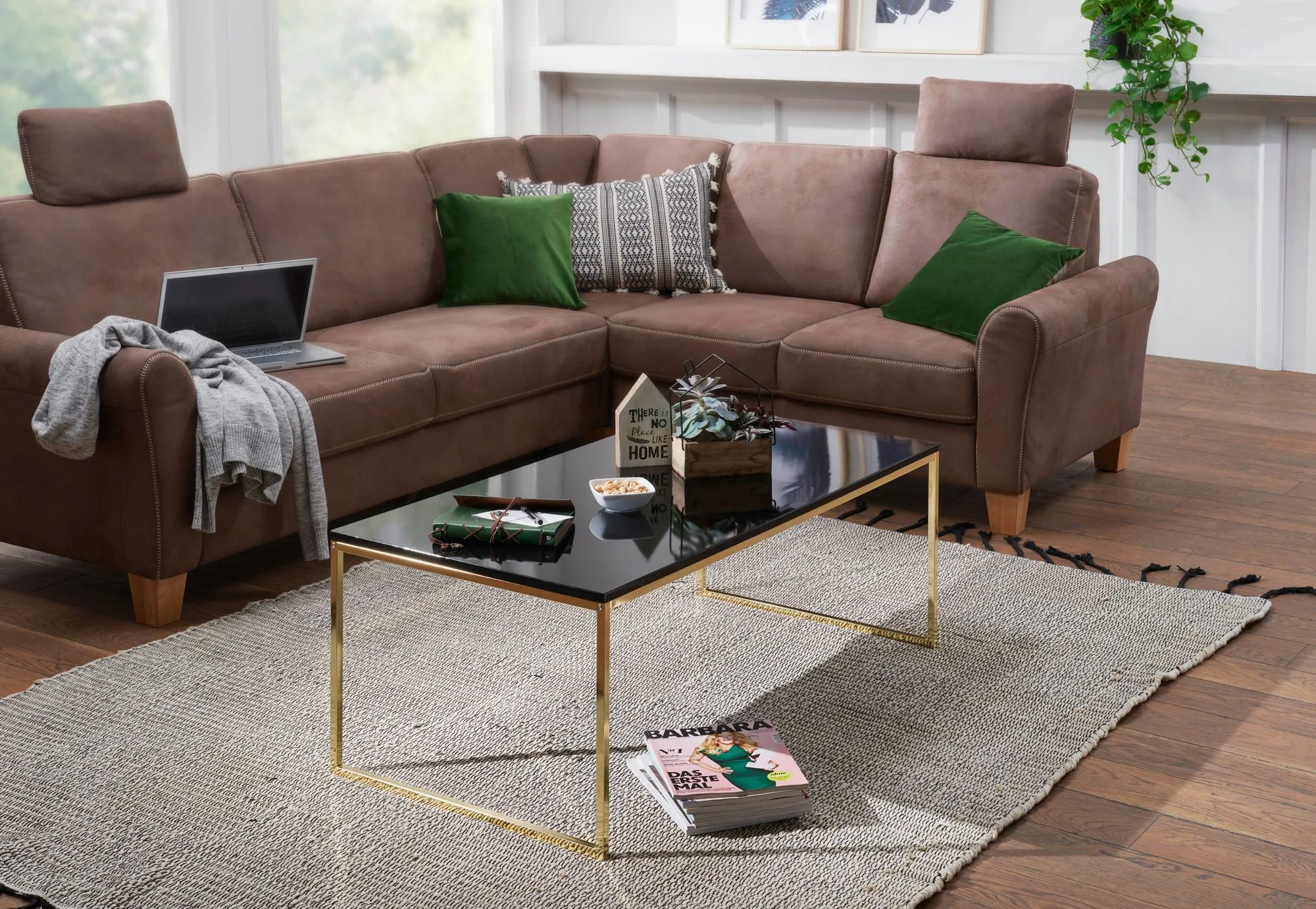 tinkaro Couchtisch rechteckig GLORIA Metall/Holz Sofatisch Schwarz/Gold