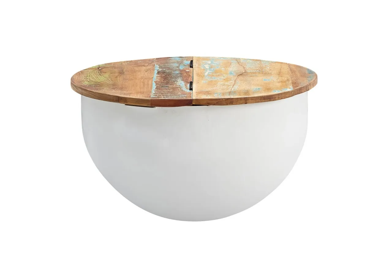 tinkaro Couchtisch rund GRIT Mango Massivholz Sofatisch Braun/Weiß