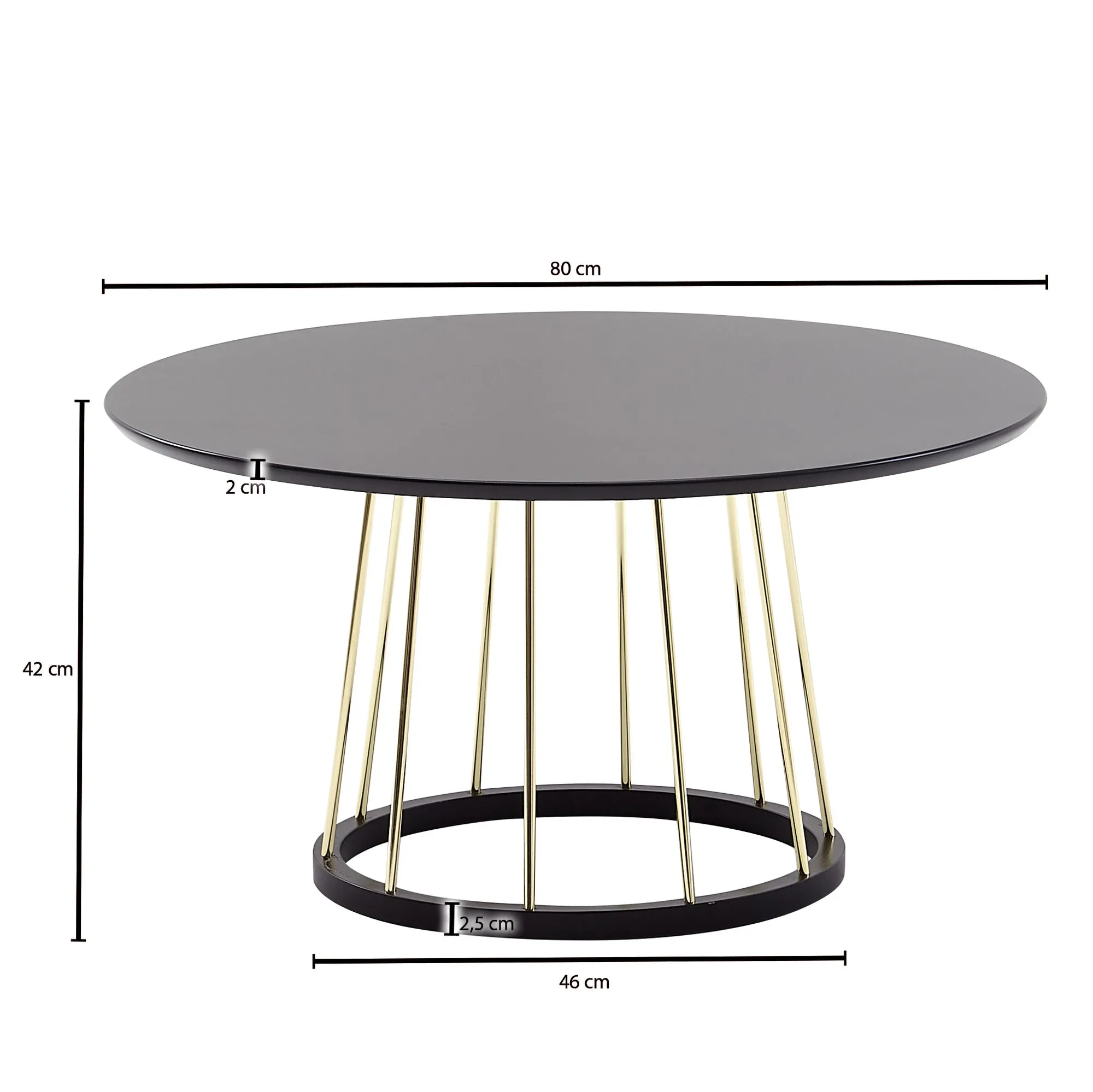 - Farbe: Tischplatte und Standfuß: Schwarz / Gestell: Goldfarben