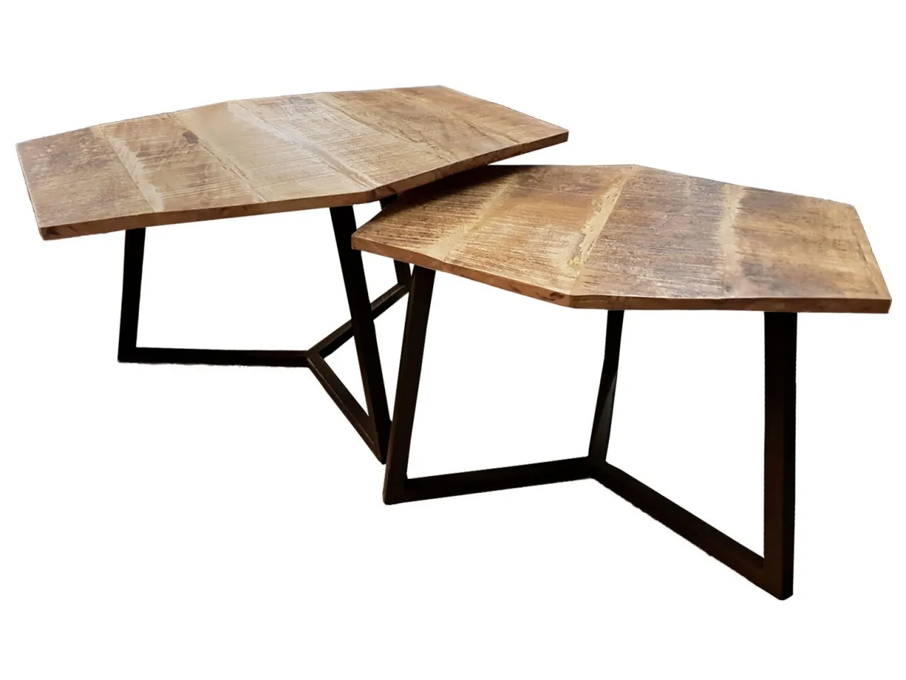 tinkaro Couchtisch-Set BRITT Altholz Satztisch Schwarz/Braun