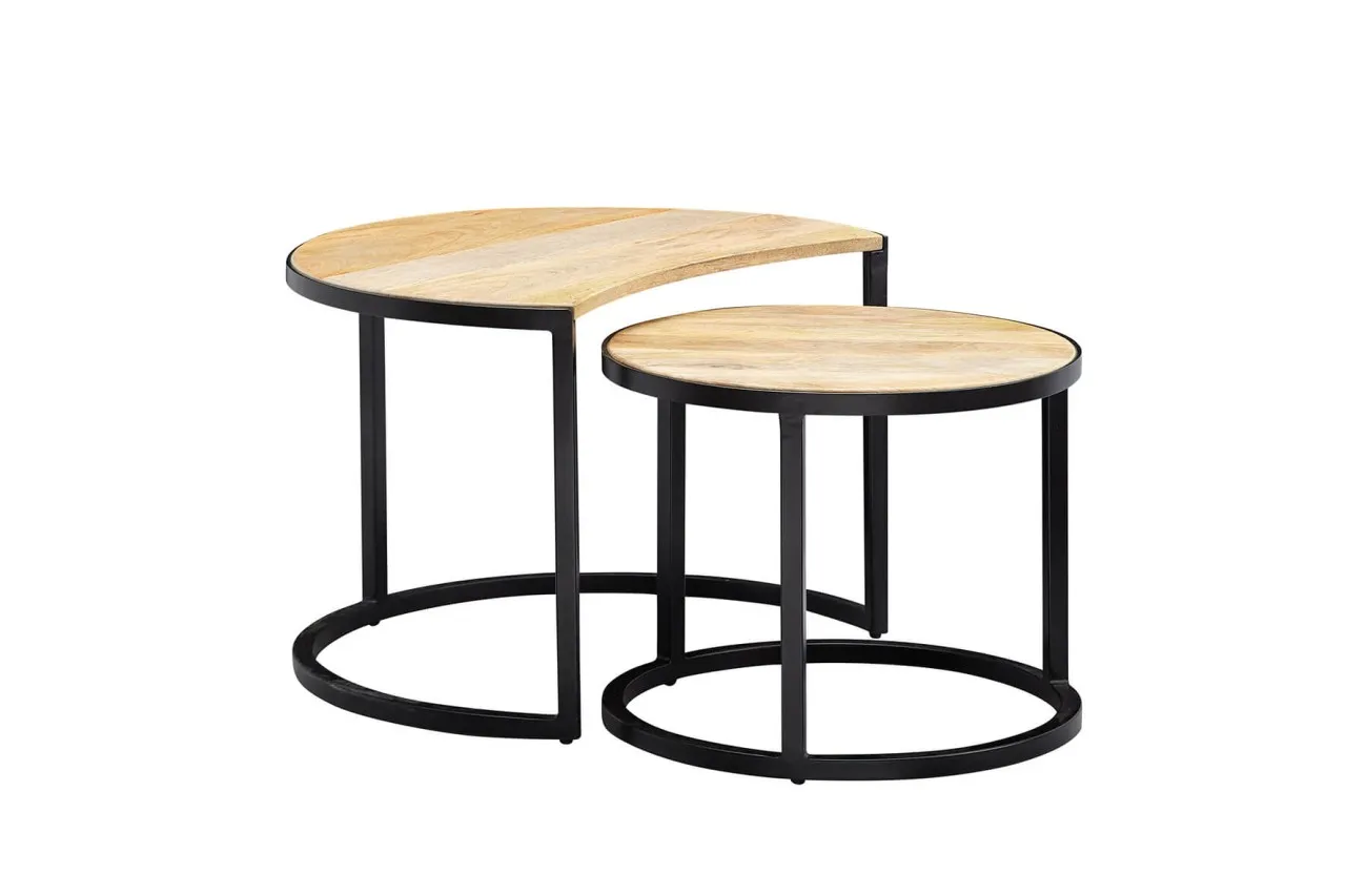 tinkaro Couchtische 2er-Set rund DODO Mango Massivholz Wohnzimmertisch Braun