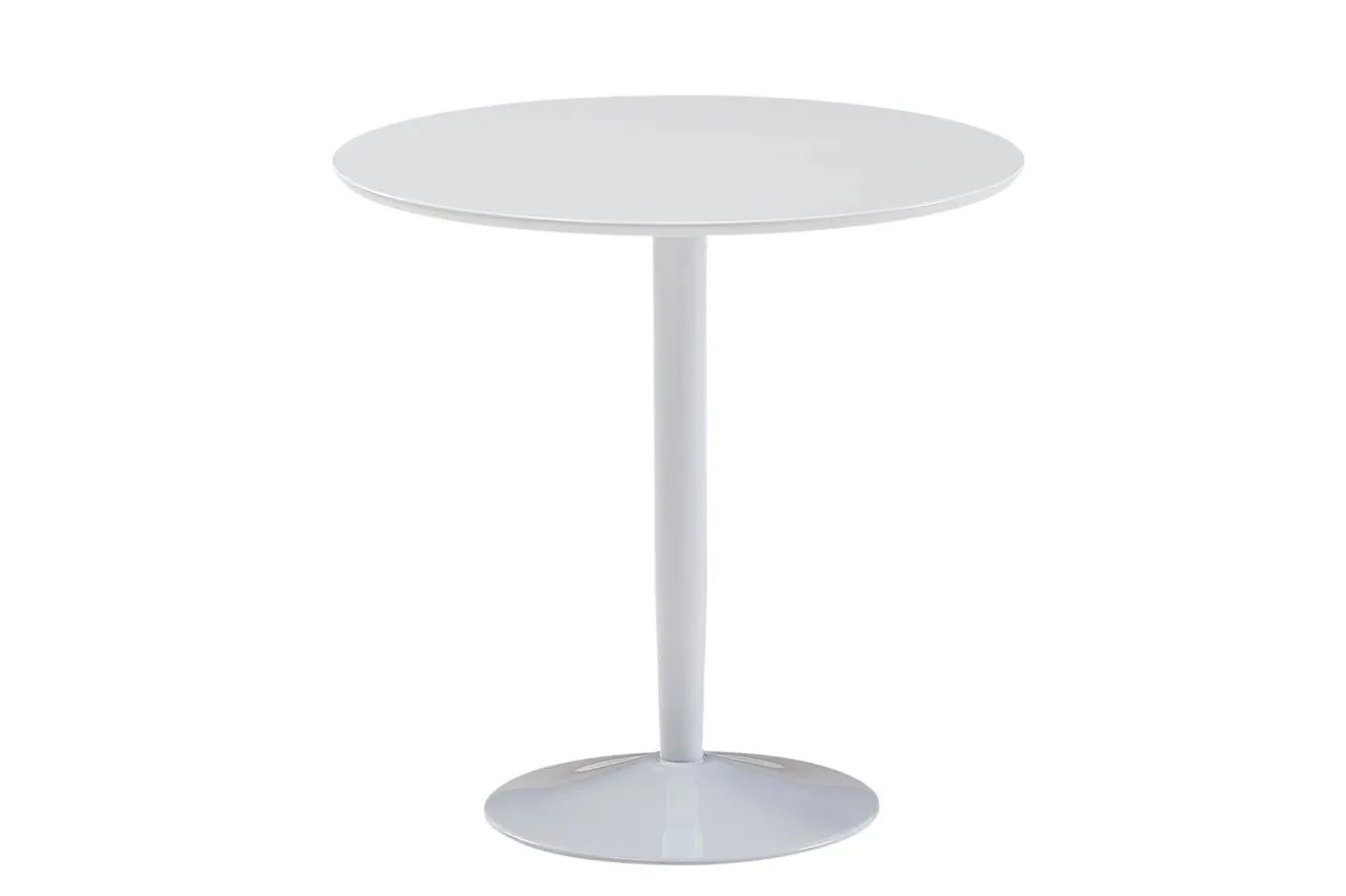 - Tisch mit Hochglanztischplatte und weißem Metallbein