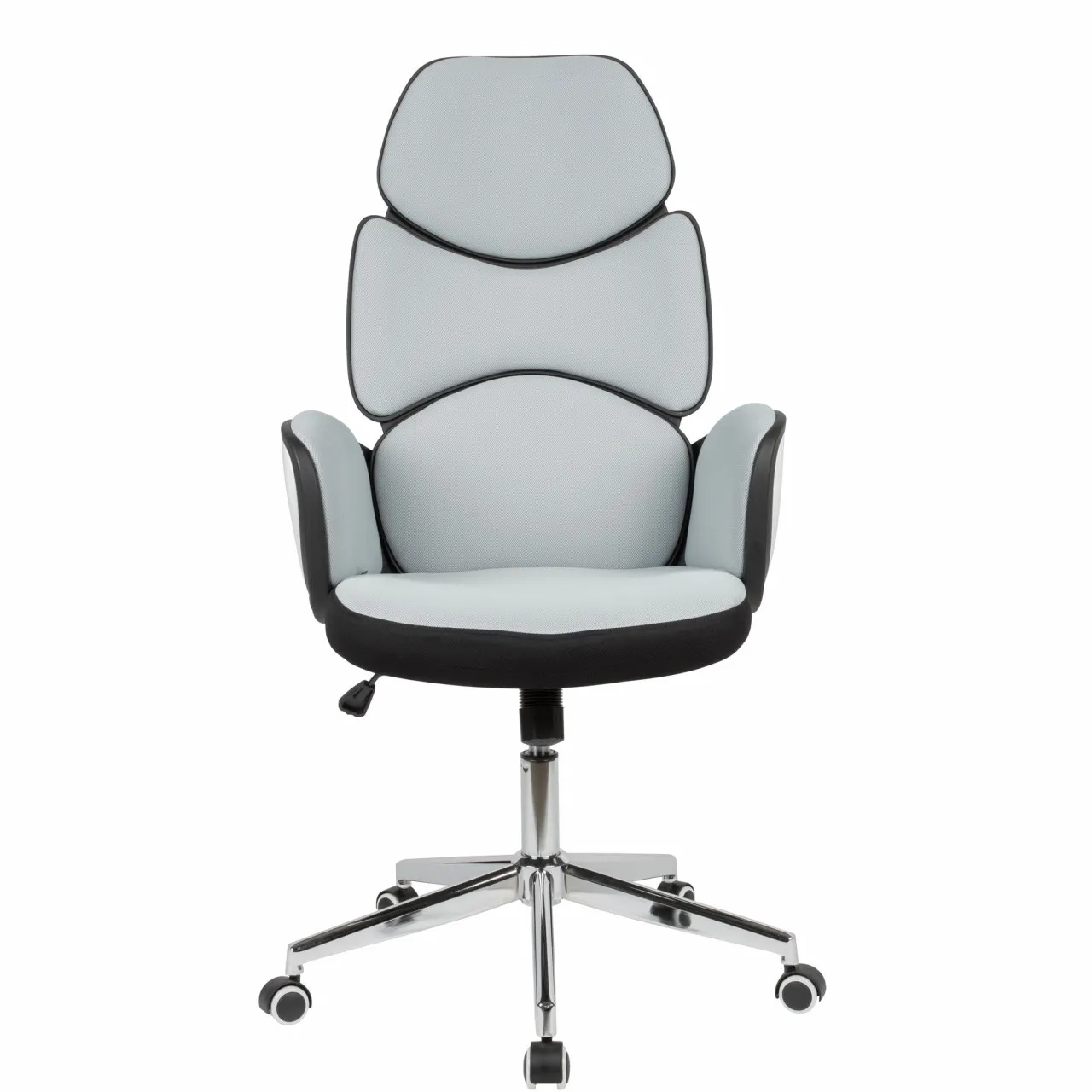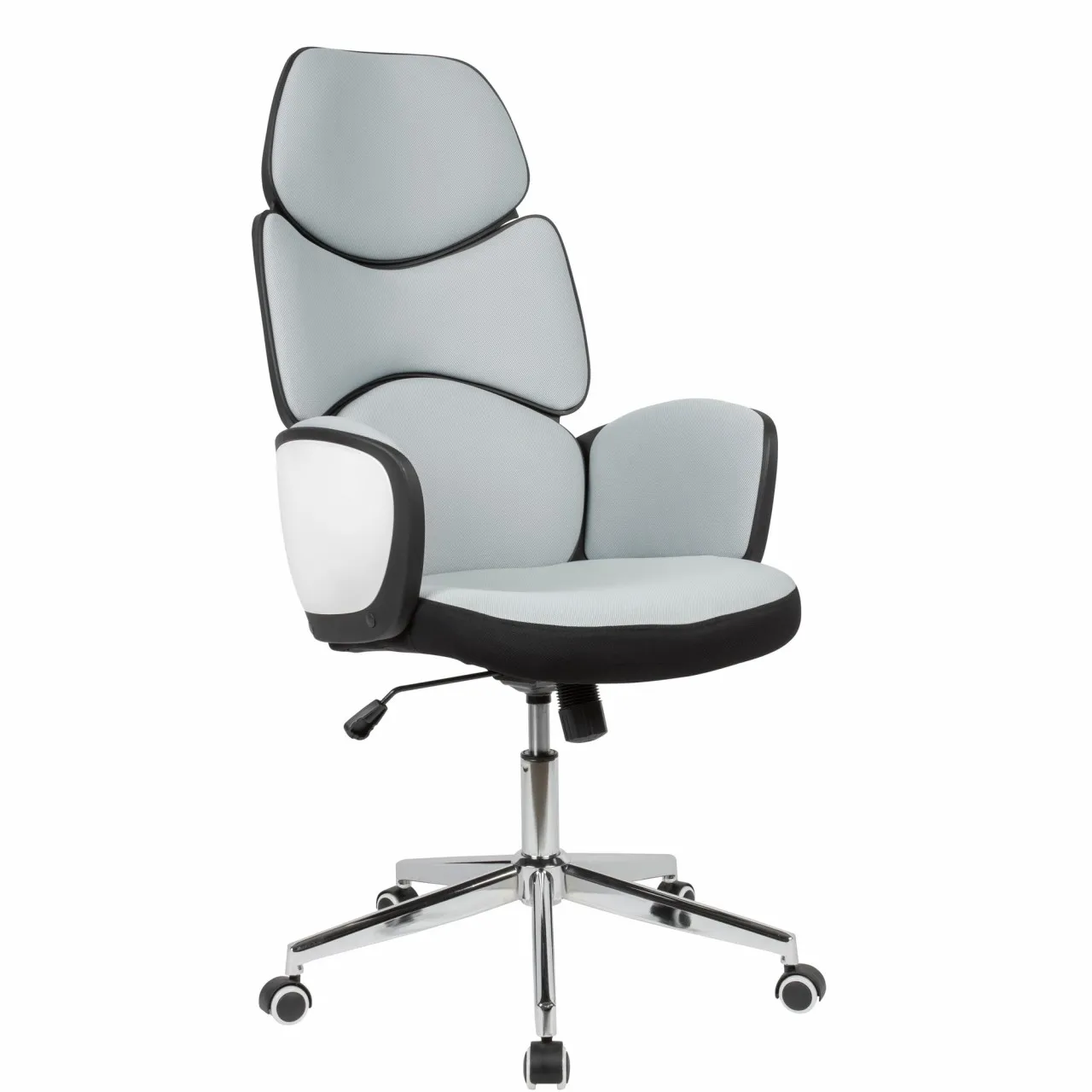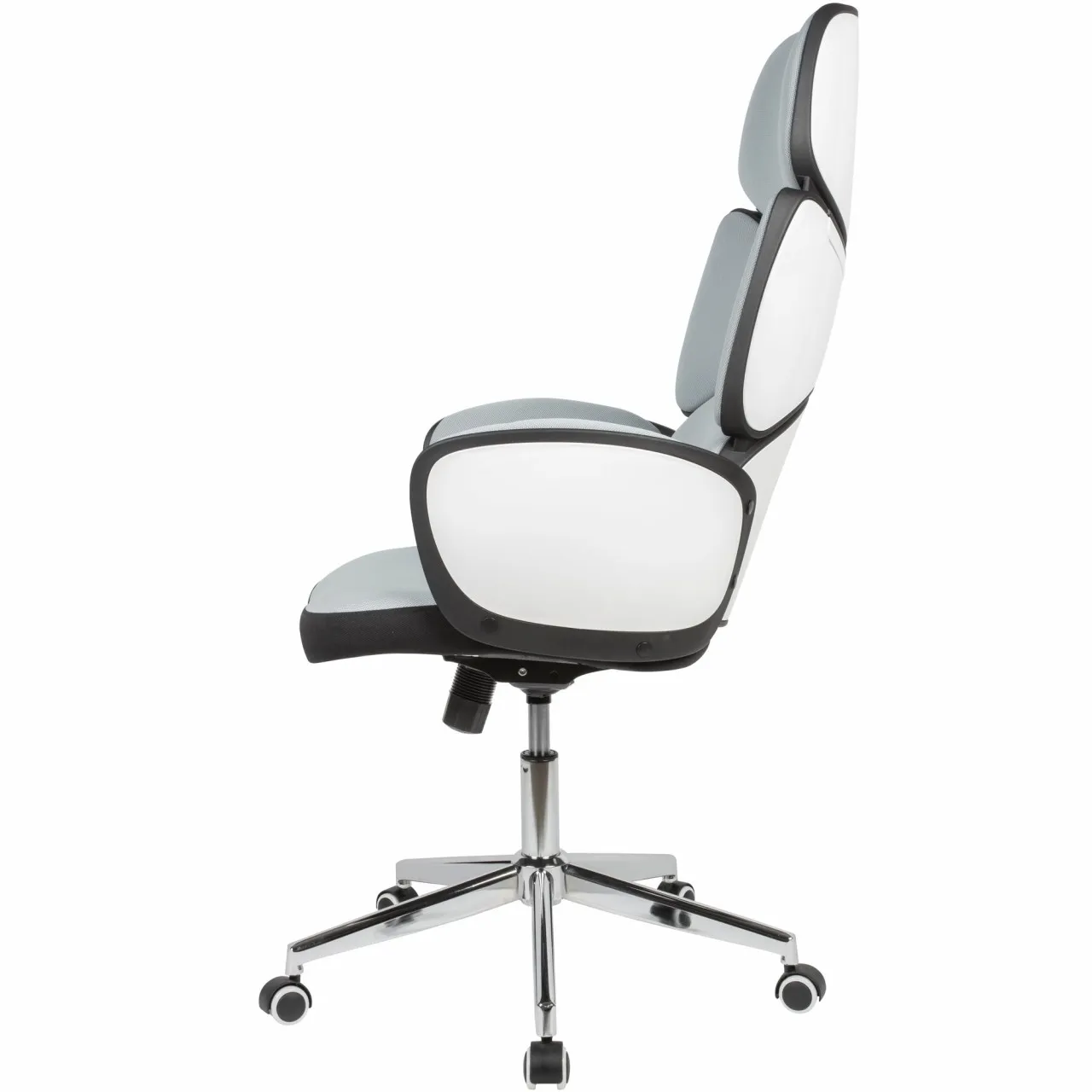 - Farbe: Rücken, Sitz und Armlehnen Polsterung: Hellgrau / Rücken- und Armlehnen schale: Weiß / Schwarz / Fußkreuz: Silbern
