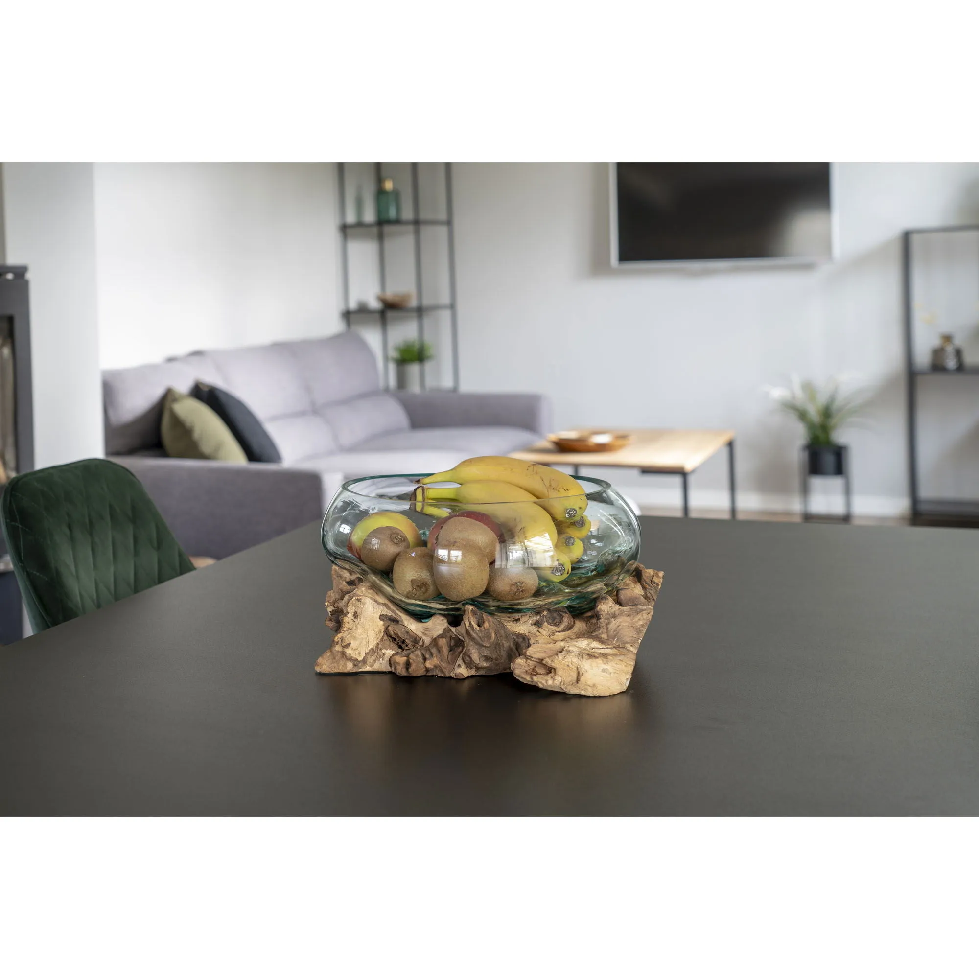 Das San Marino Pflanzengefäß aus Teakholz, Glas, Stahl und Naturalmaterialien ist ein einzigartiges und stilvolles Pflanzgefäß, das durch seine organische Form und hochwertigen Materialien besticht. Dieses Möbelstück vereint modernes Design mit natürlicher Eleganz und wird somit zum Blickfang in jedem Raum. Mit seiner Kombination aus klaren Glaselementen und rustikalem Holz bringt es eine harmonische Atmosphäre in Ihr Zuhause oder Büro.