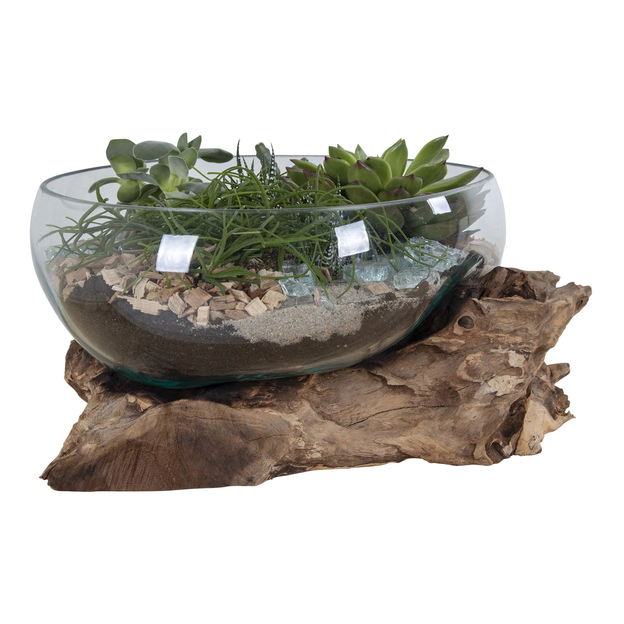 - Klares und transparentes Glas, das die Erde und Steine im Inneren zeigt