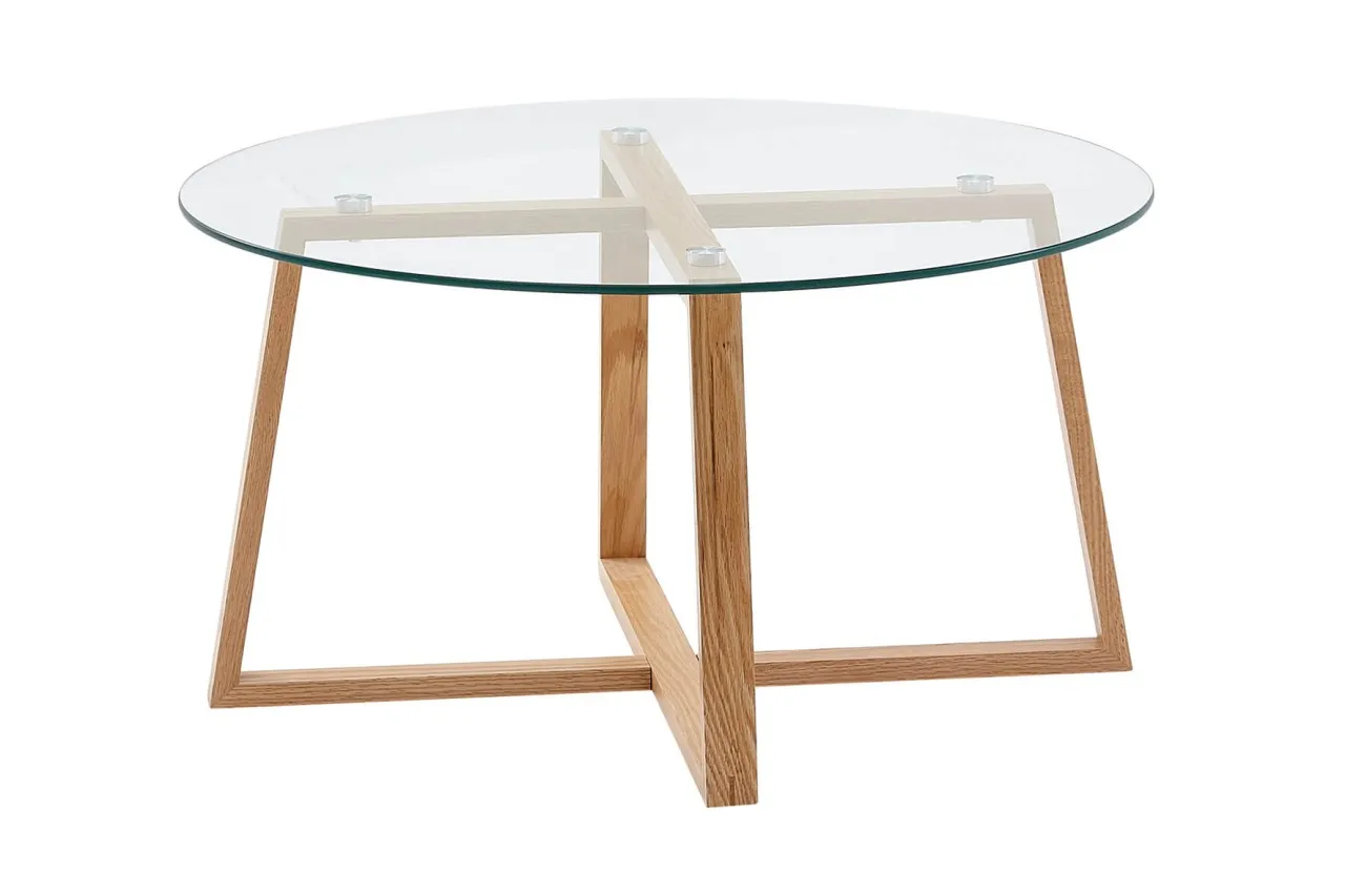 tinkaro großer Couchtisch BENTE Sofatisch Glas Eiche Wohnzimmertisch rund modern