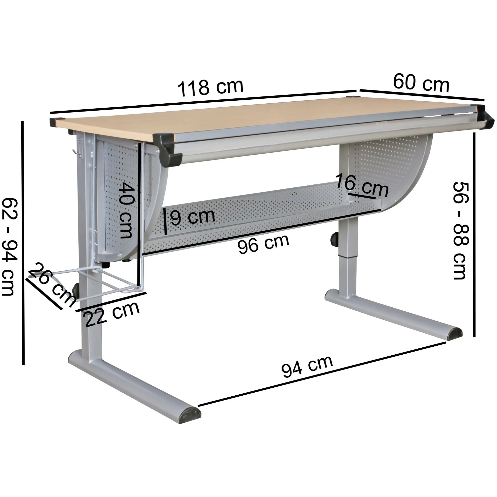 - Tischhöhe: Mindesthöhe 62 cm, Maximalhöhe 94 cm