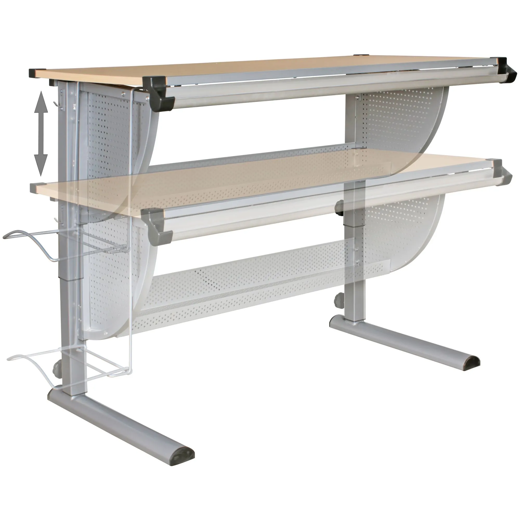 - Die Tischplatte ist in 10 Stufen bis ca. 70° im Neigungswinkel verstellbar