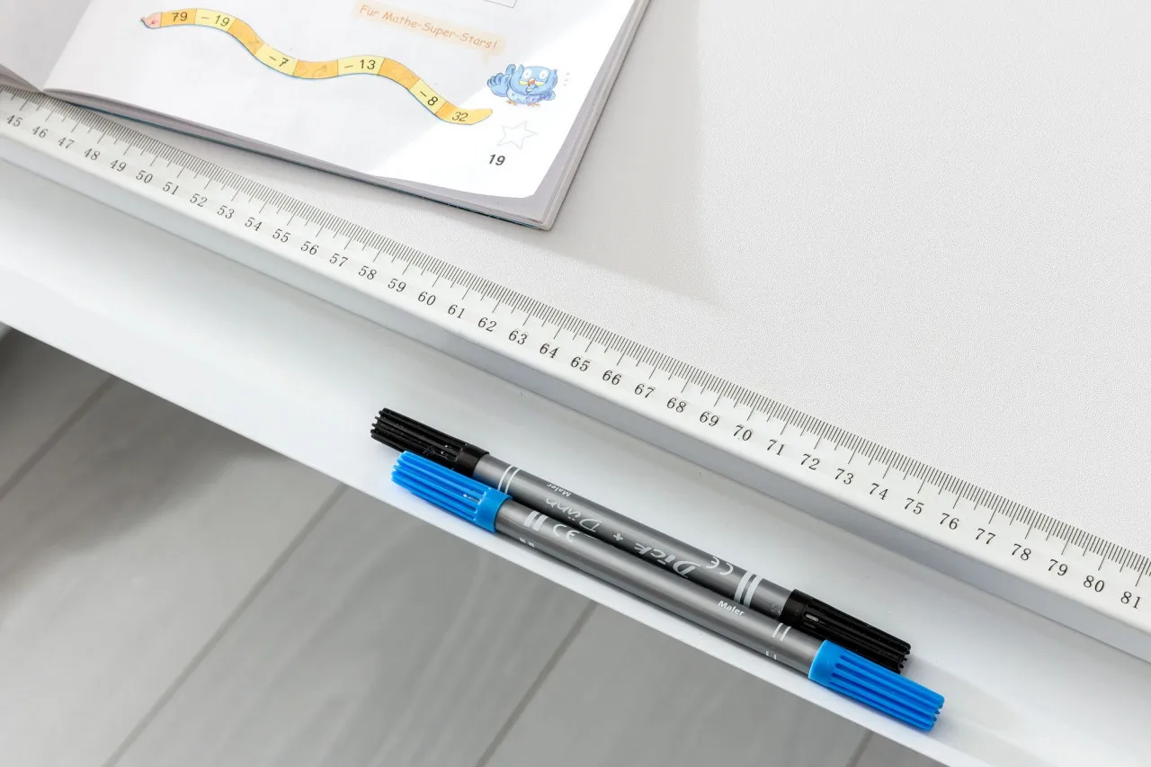 - Ein Schreibtisch inkl. Stifthalterung und Lineal