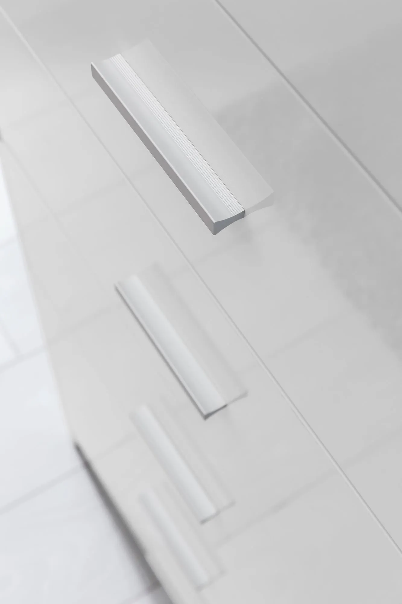 - Silberfarbene Griffe an den Schubladen