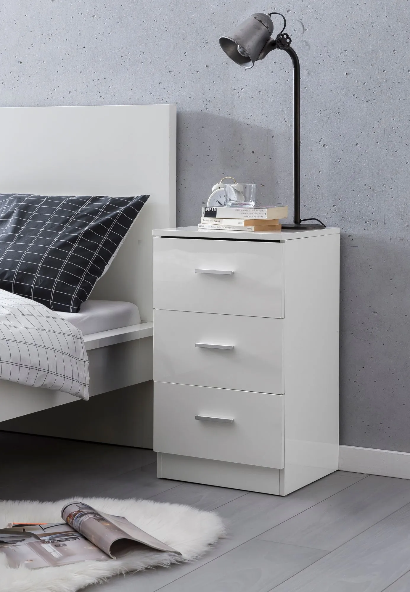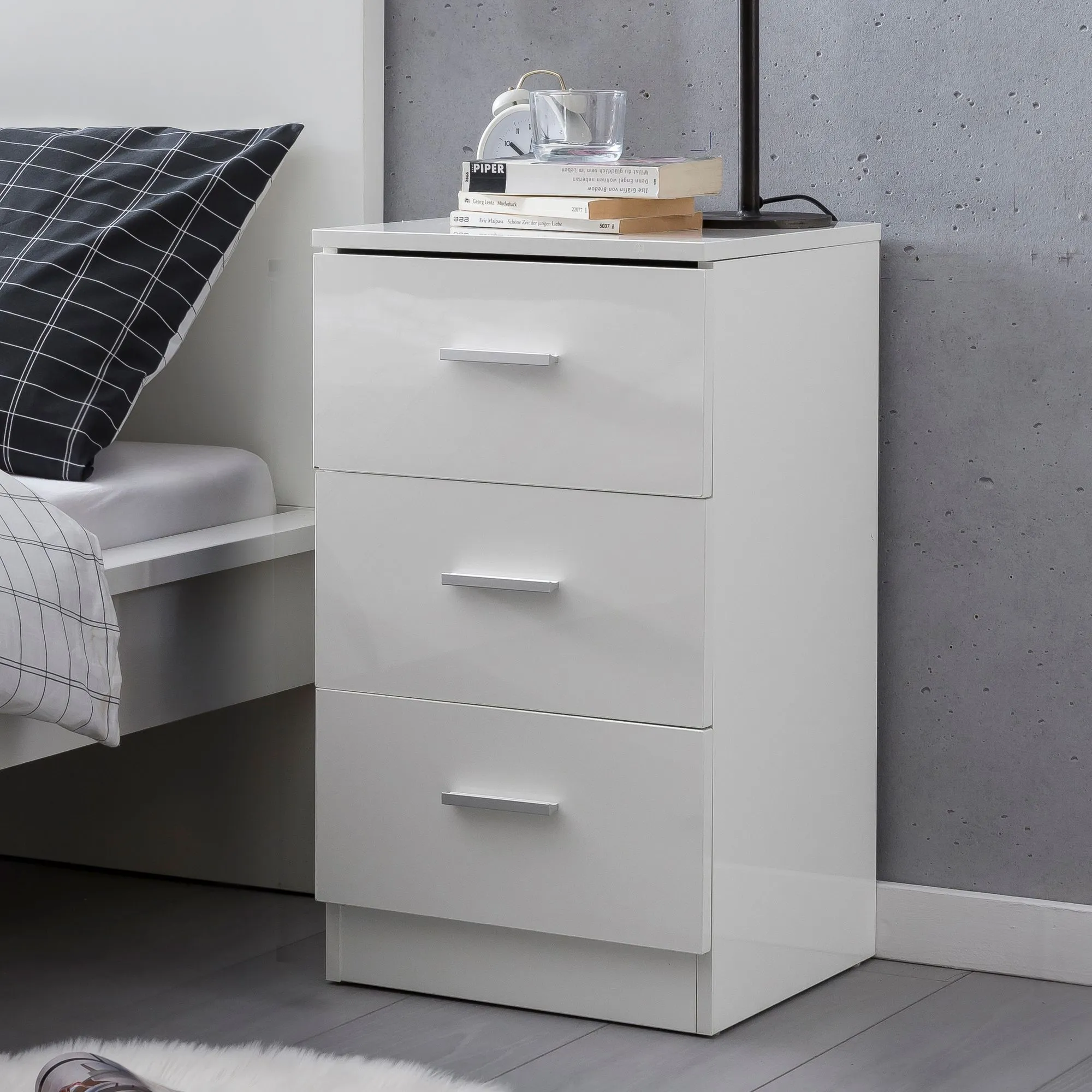 - Edles Nachtkästchen mit drei Schubladen in Hochglanzoptik