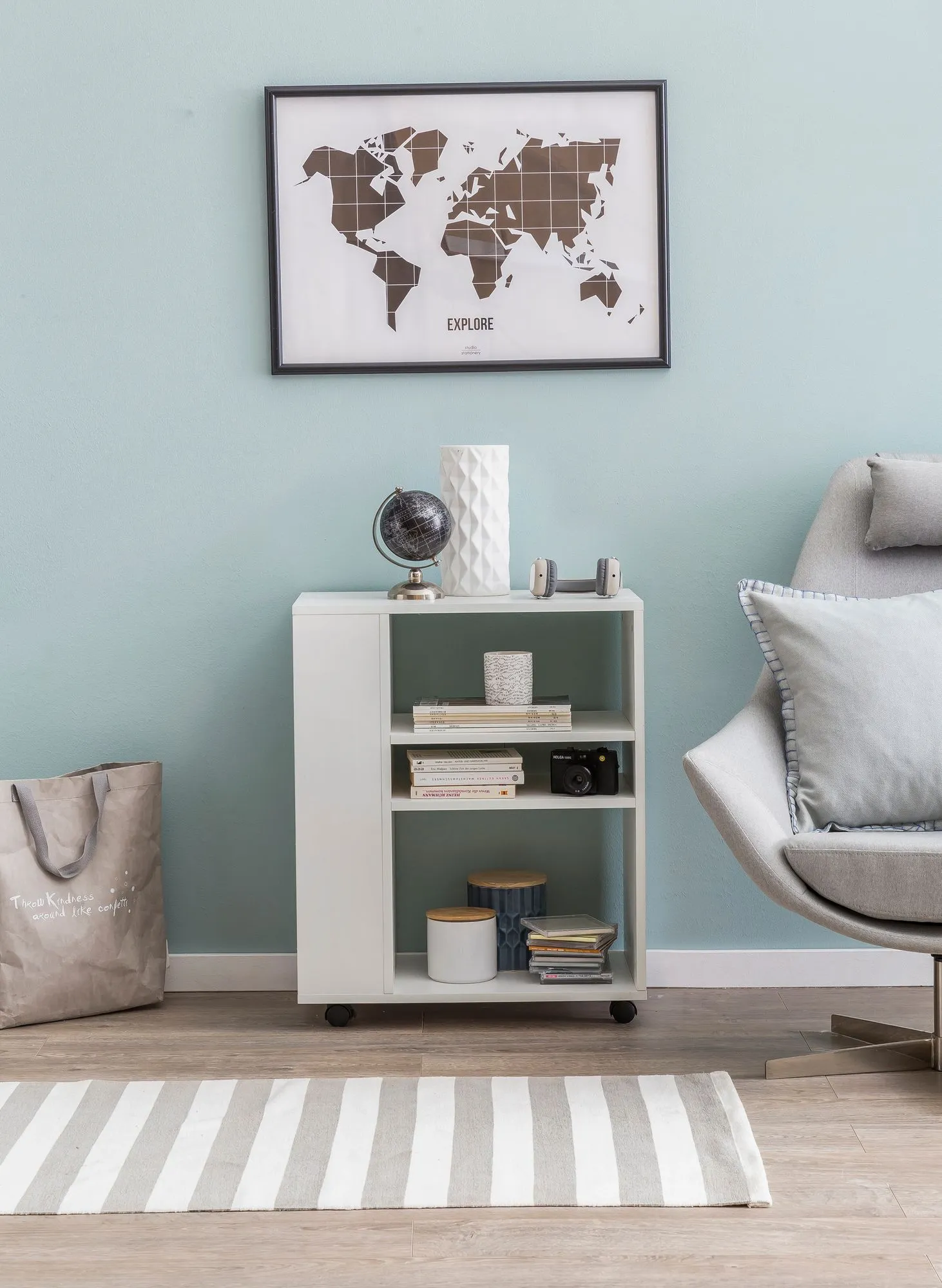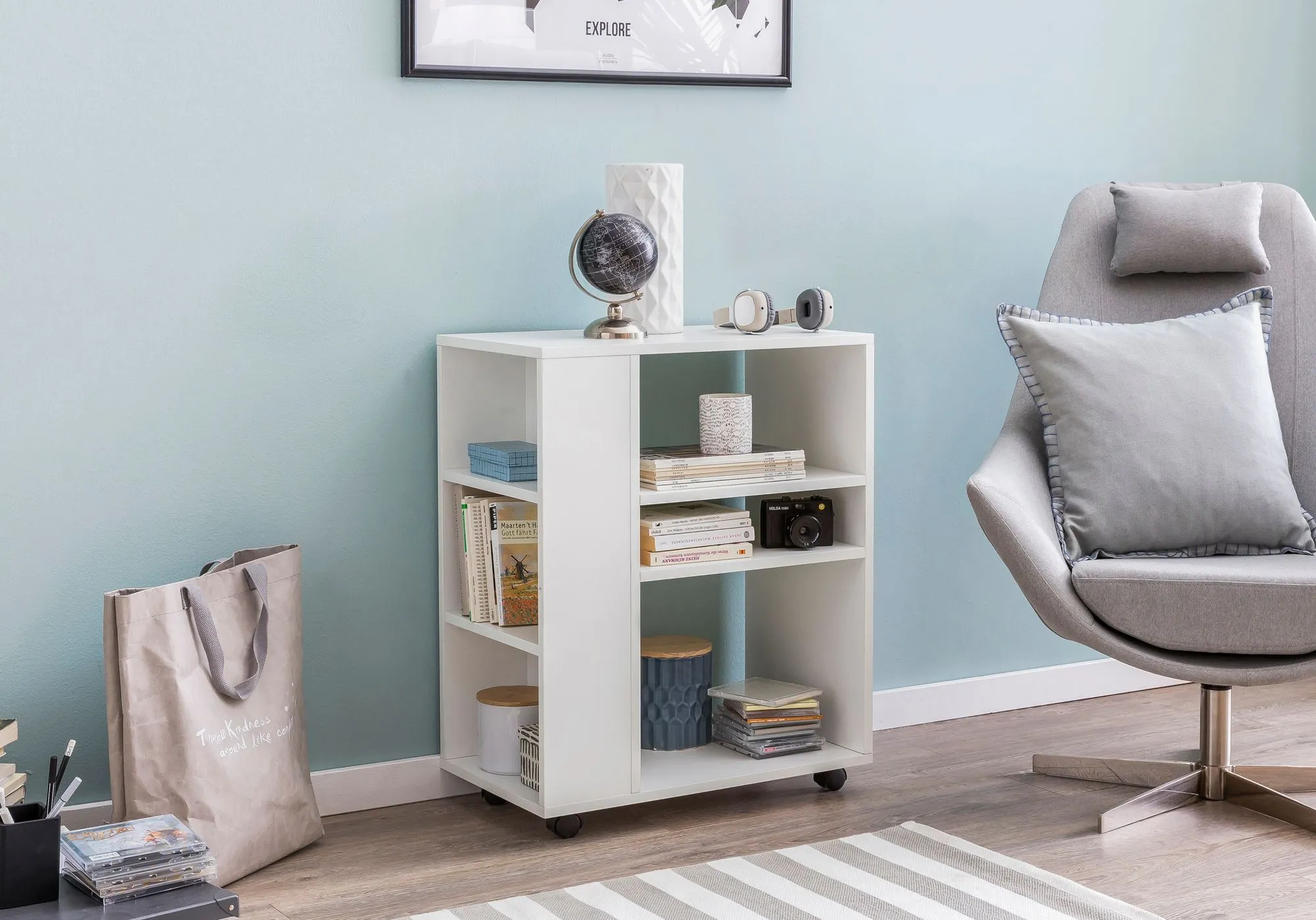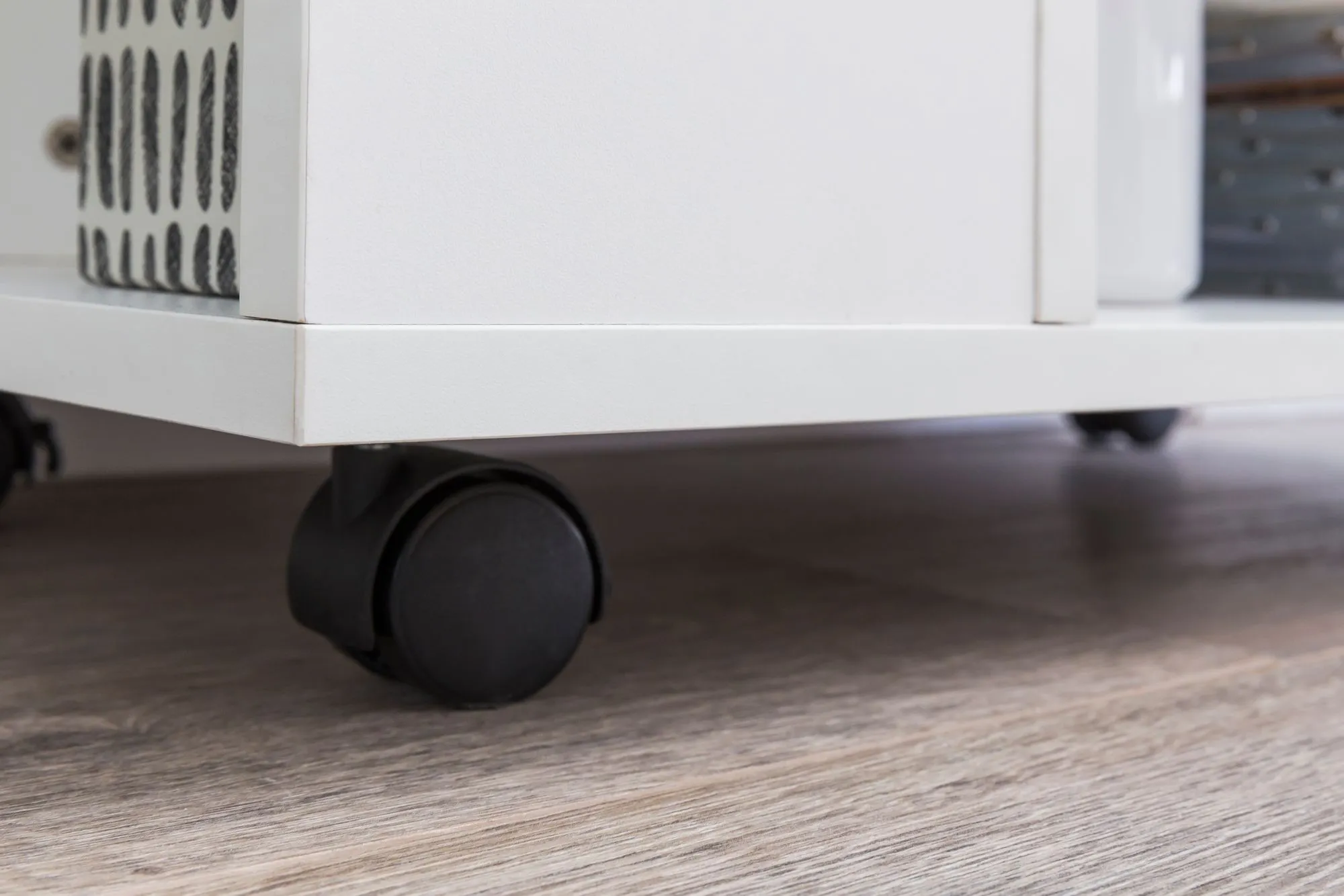 - Farbe: Regal: Weiß / Rollen: Schwarz