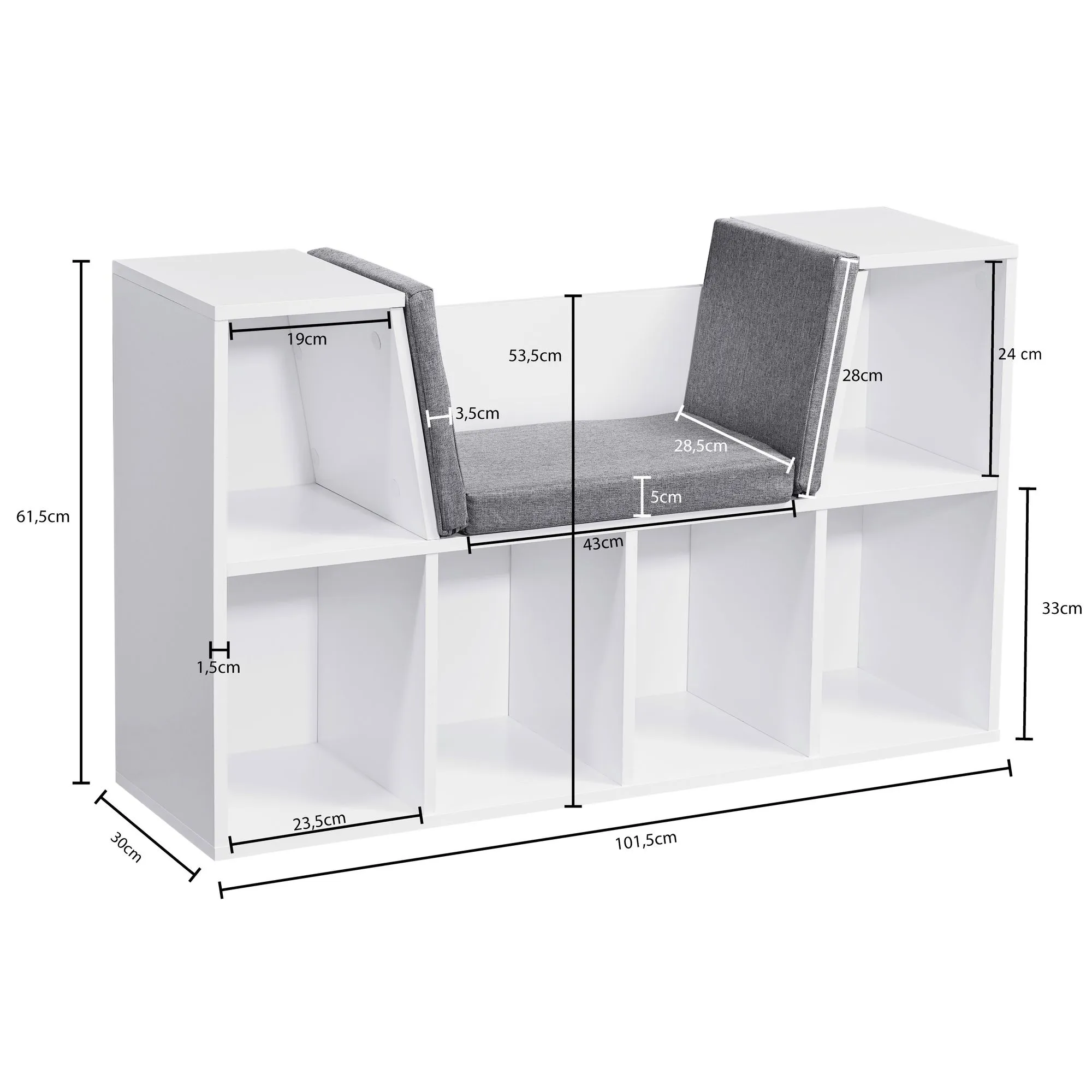- Sitzbank mit sechs Regalfächern