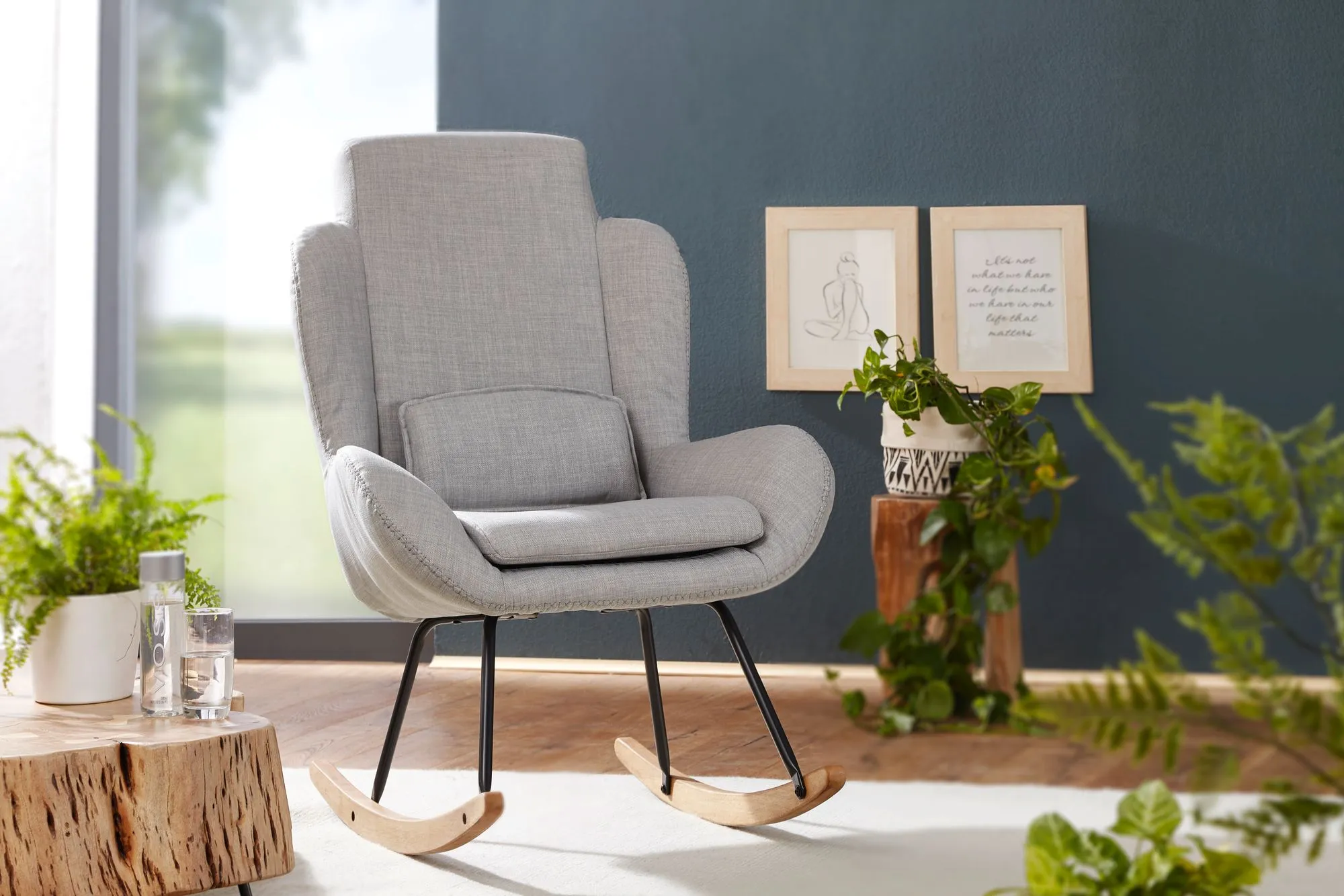 tinkaro Relaxsessel schwingend HOMER Rubberwood/Stoff Schaukelstuhl Grau
