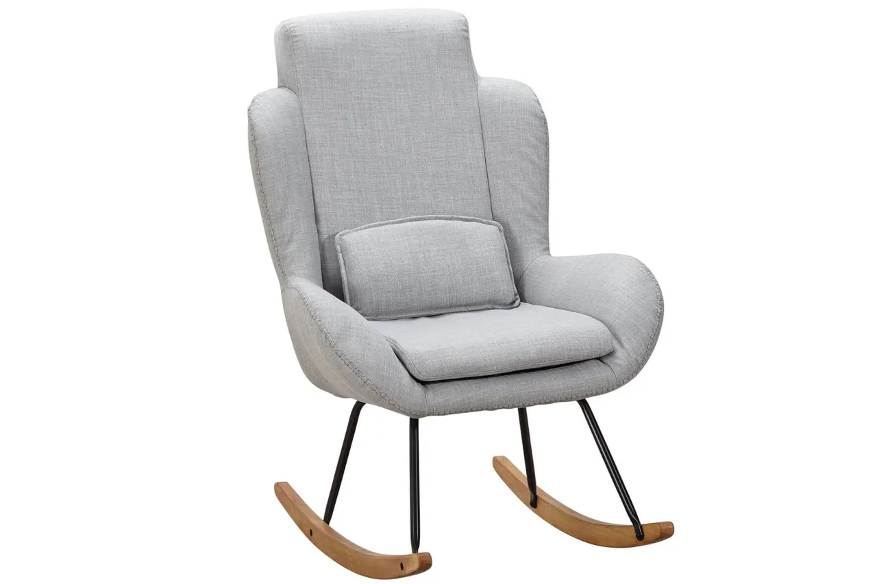 tinkaro schwingender Relaxsessel HOMER Rubberwood/Stoff 013111 Schaukelstuhl Wipp-Sessel Grau