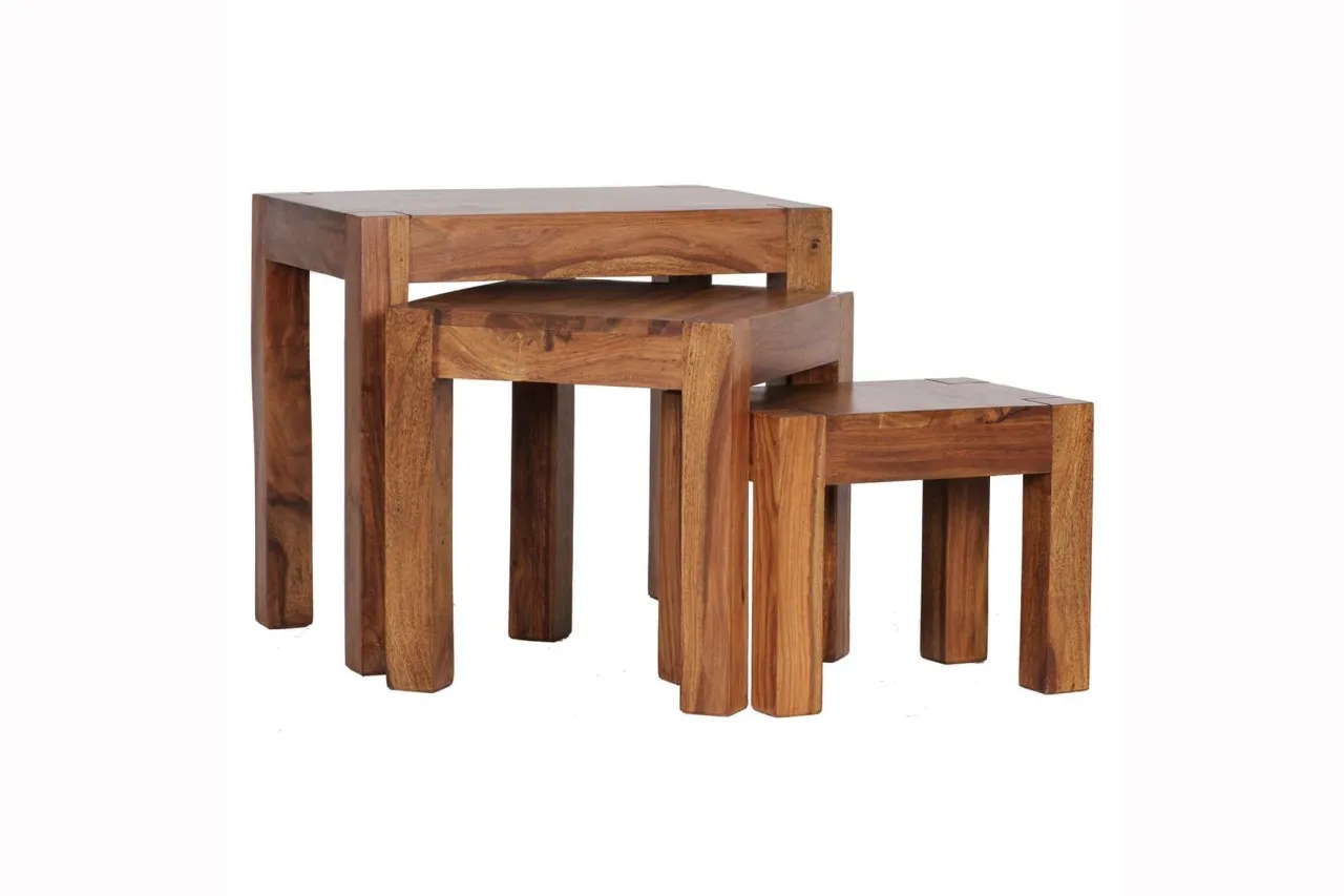 tinkaro Satztisch 3er-Set eckig DURSUN Massivholz Sheesham Beistelltisch Braun