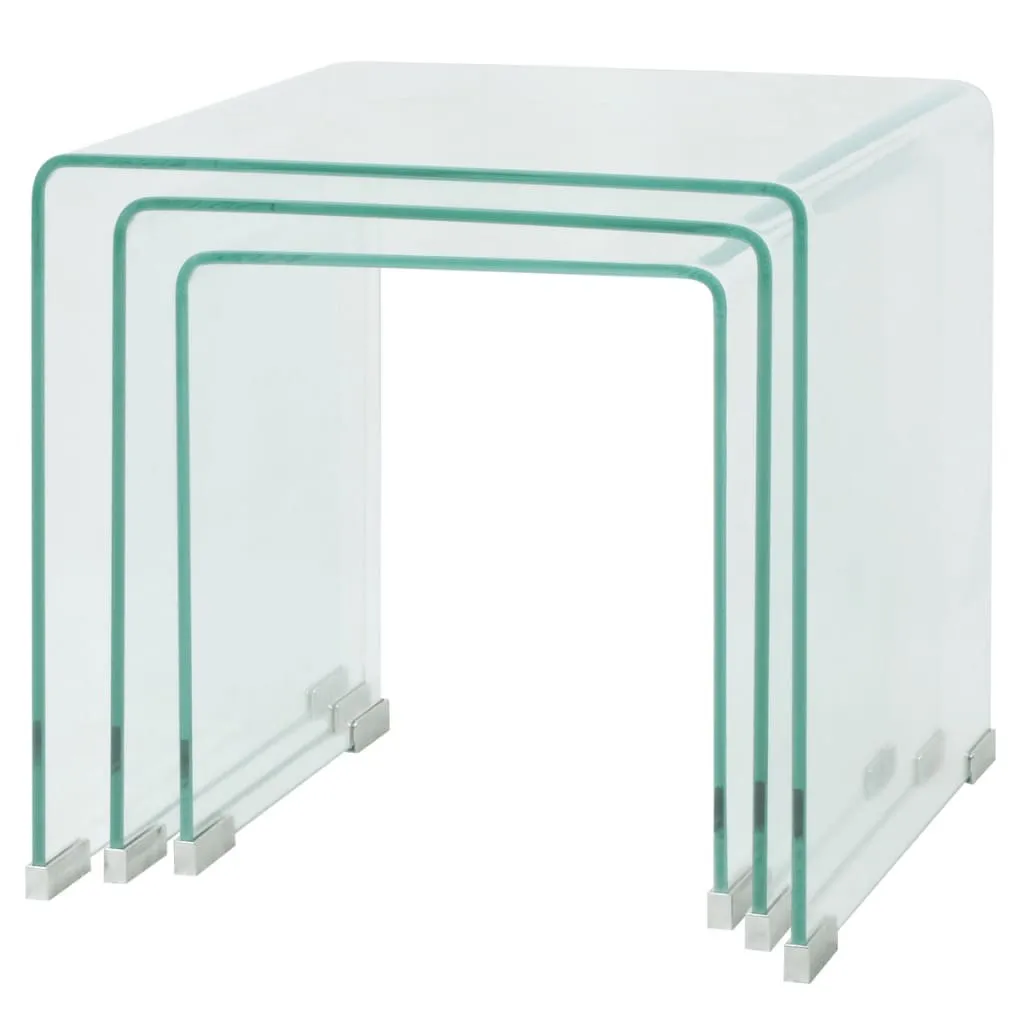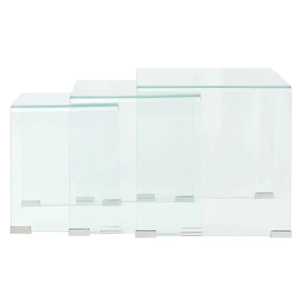 tinkaro Satztisch-Set 3-teilig eckig LEONORE Glas Beistelltische Transparent