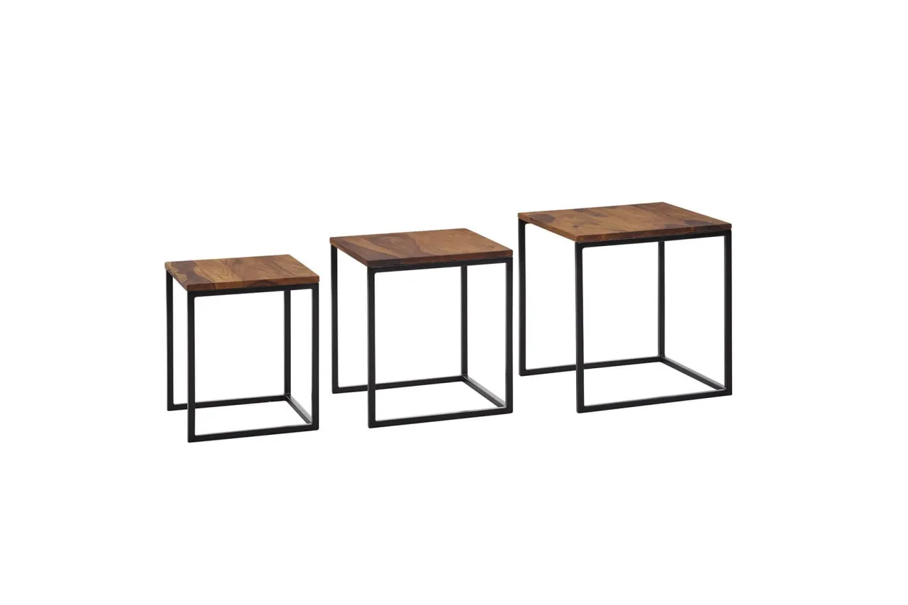 tinkaro Satztische 3er-Set quadratisch ERWIN Sheesham Massivholz Beistelltisch Braun
