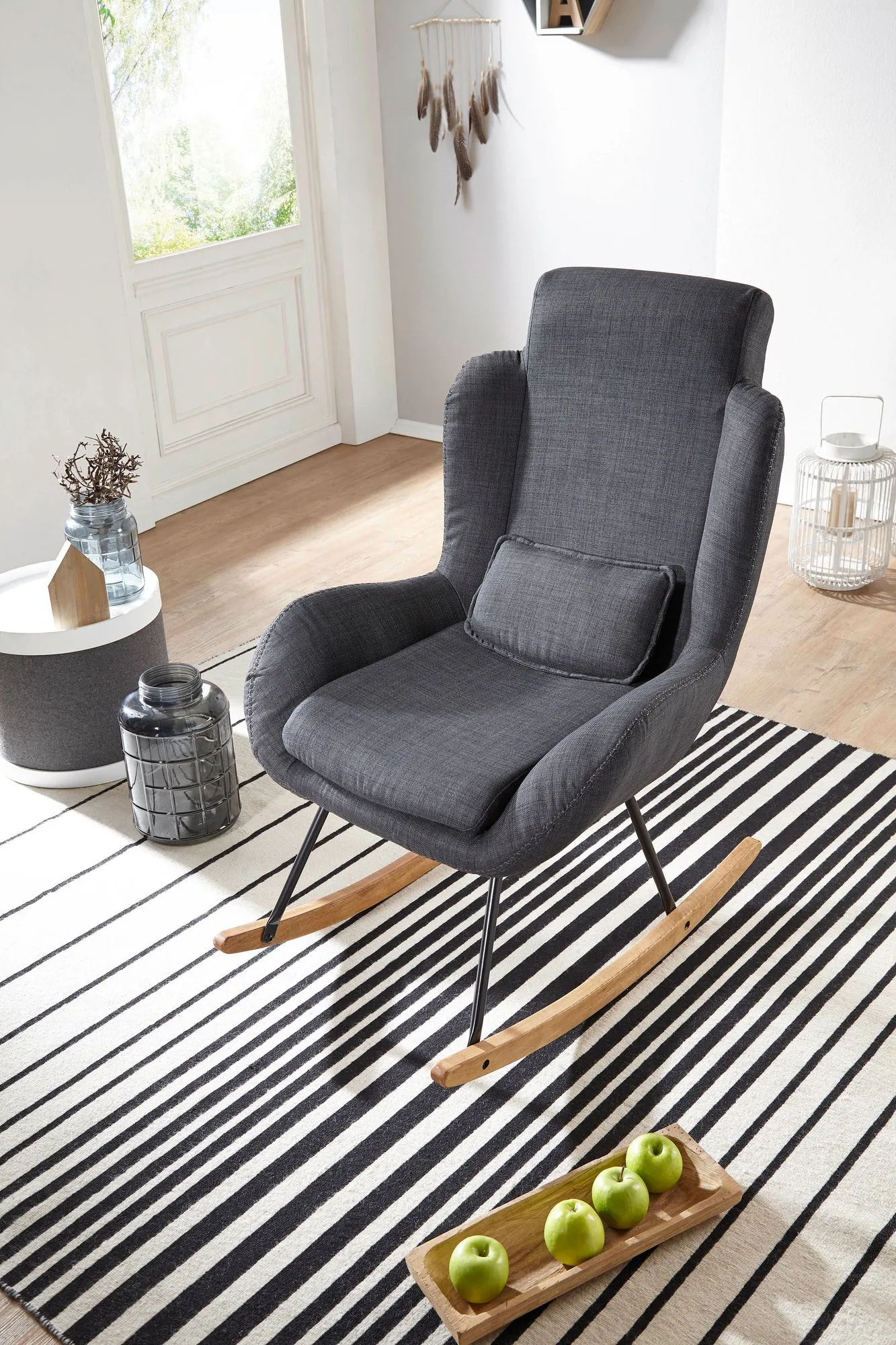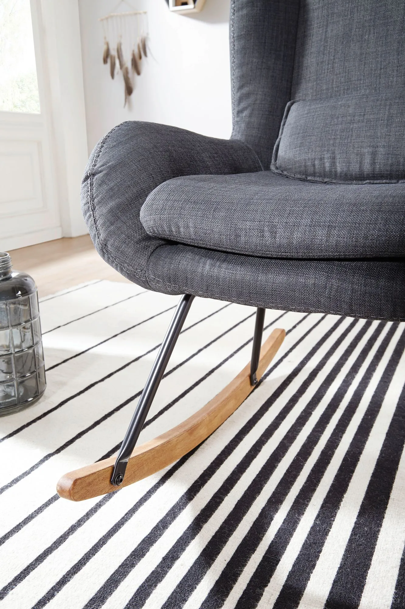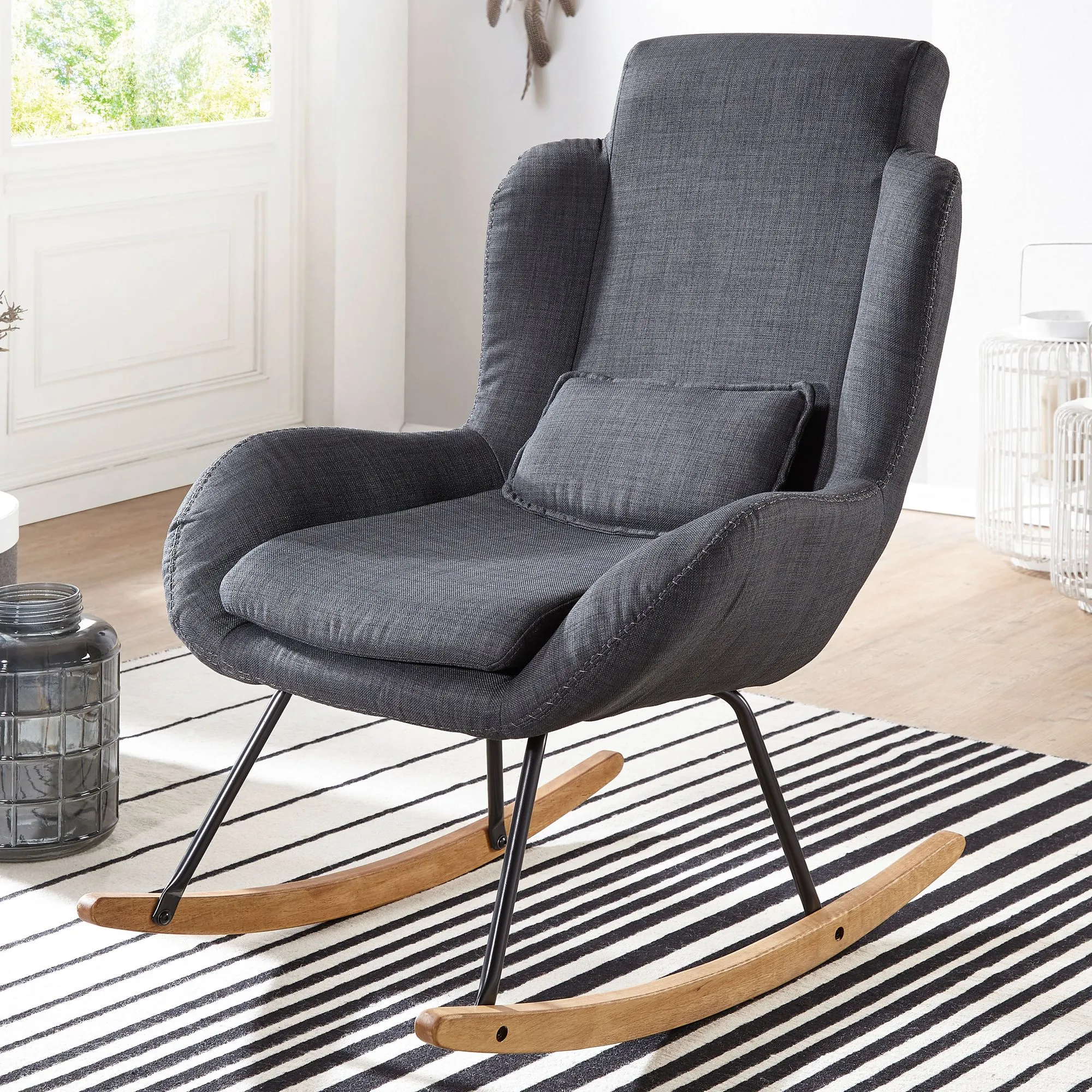 tinkaro Schaukelstuhl schwingend JANKO Rubberwood/Stoff Relaxliege Anthrazit