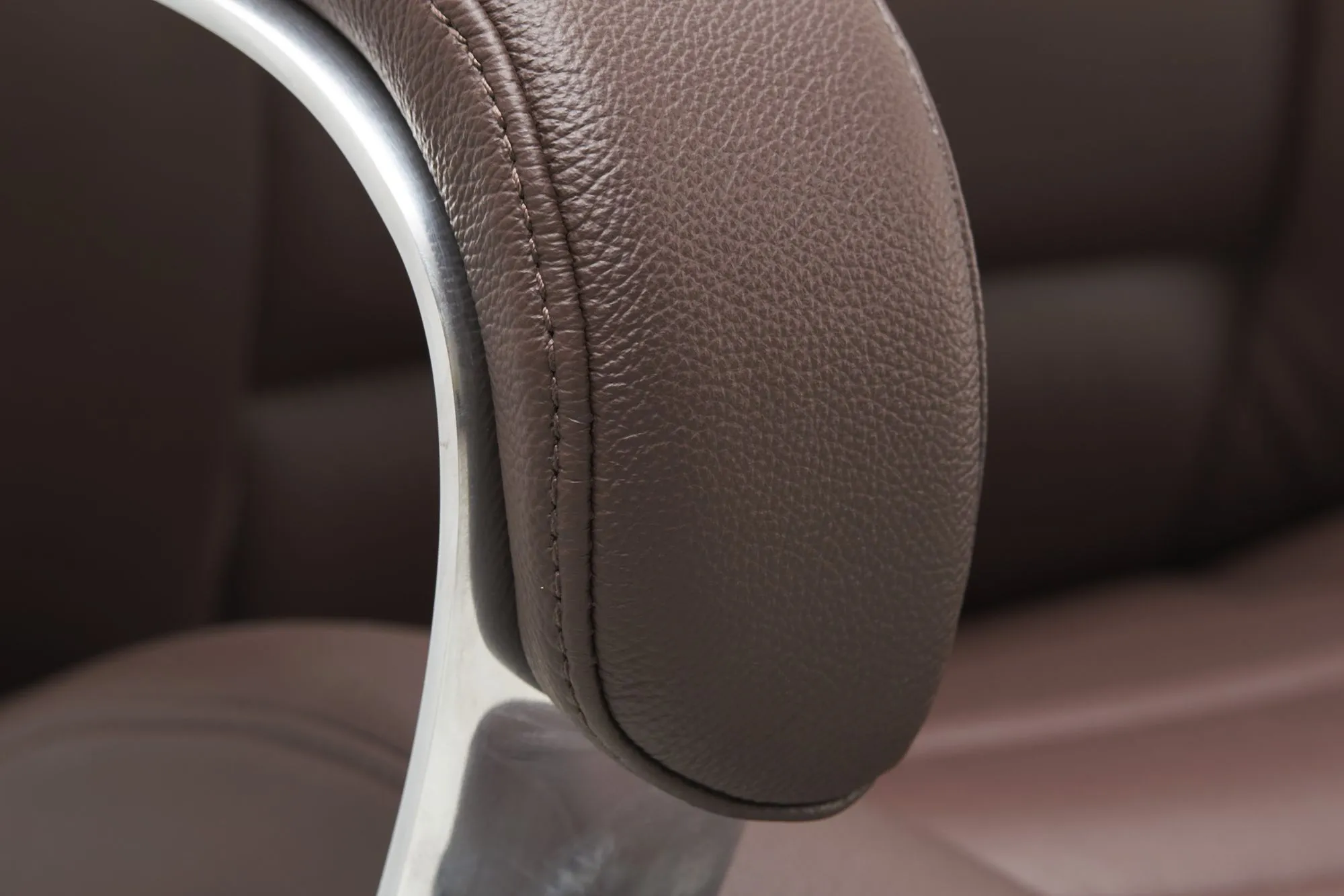 - Farbe: Rücken, Sitz & Armlehnen-Polsterung: Braun / Fußkreuz & Armlehnen: Silber