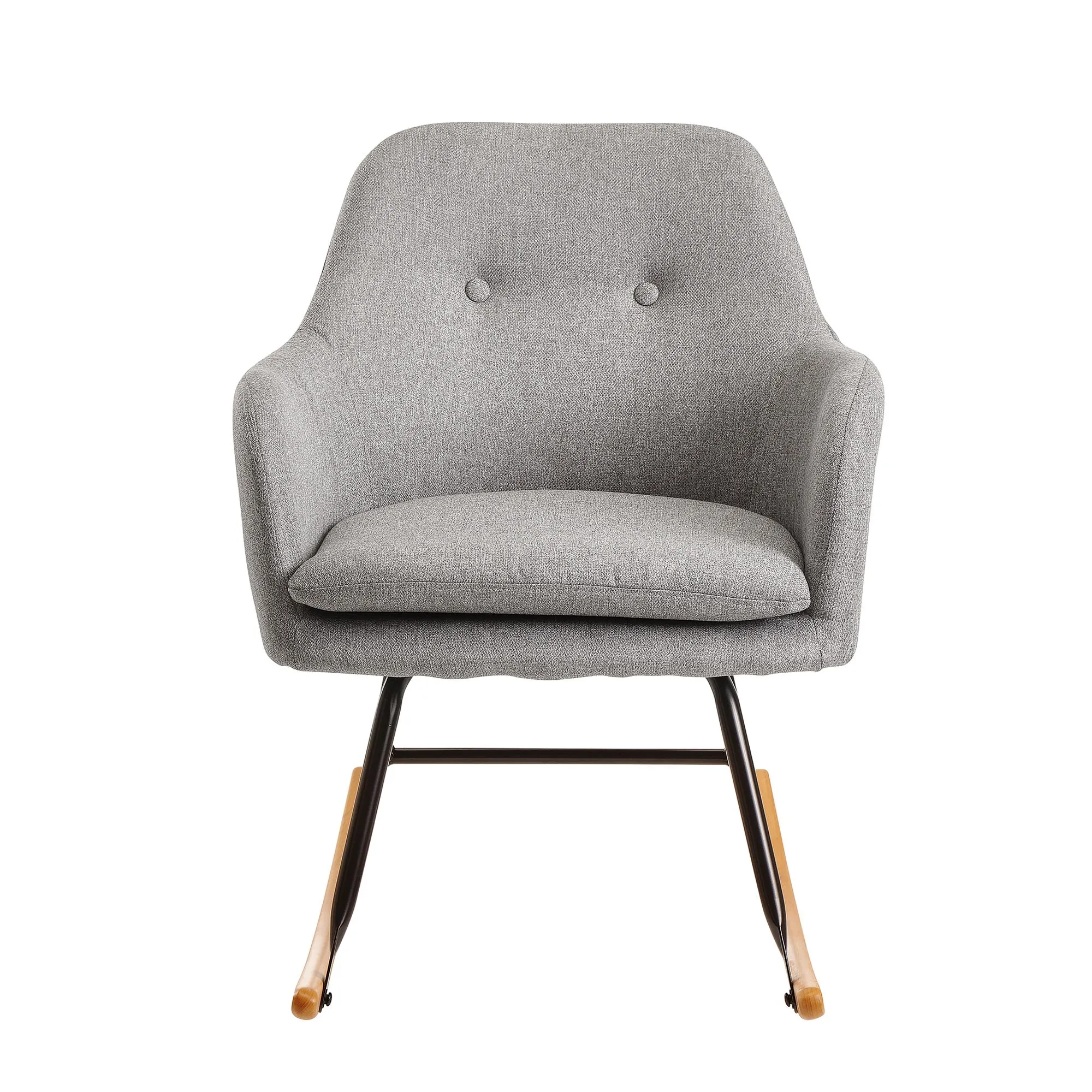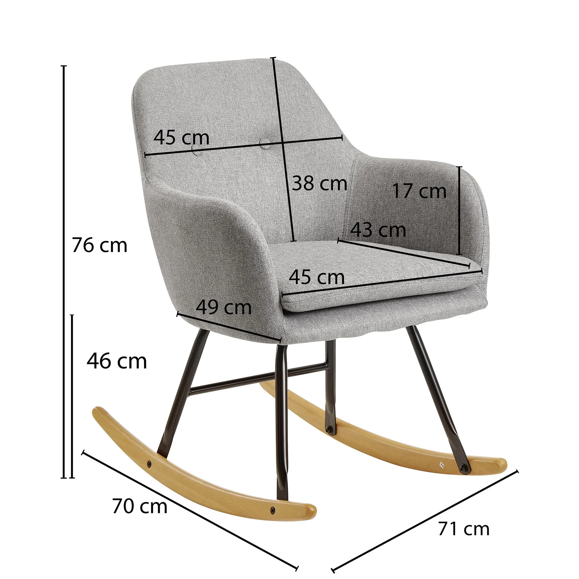 tinkaro Schwingsessel HULDA Stoff/Hevea Massivholz Schaukelstuhl Hellgrau