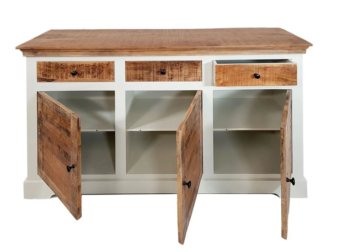 tinkaro Sideboard LEONID Mangoholz Anrichte 3-türig Weiß/Natur