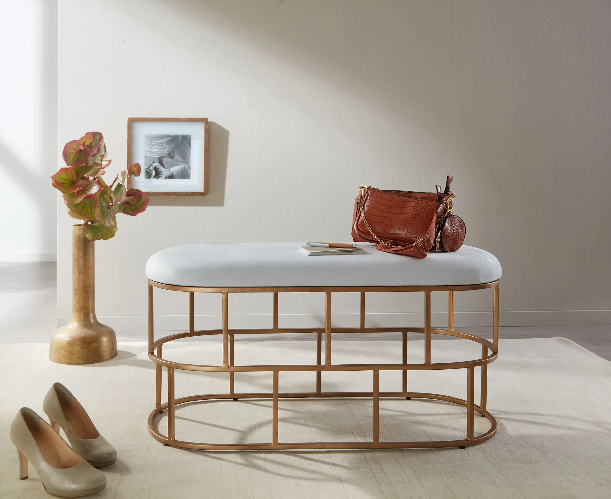 tinkaro Sitzbank BARDH Samt Flur Polsterbank mit Metallgestell Weiß / Gold