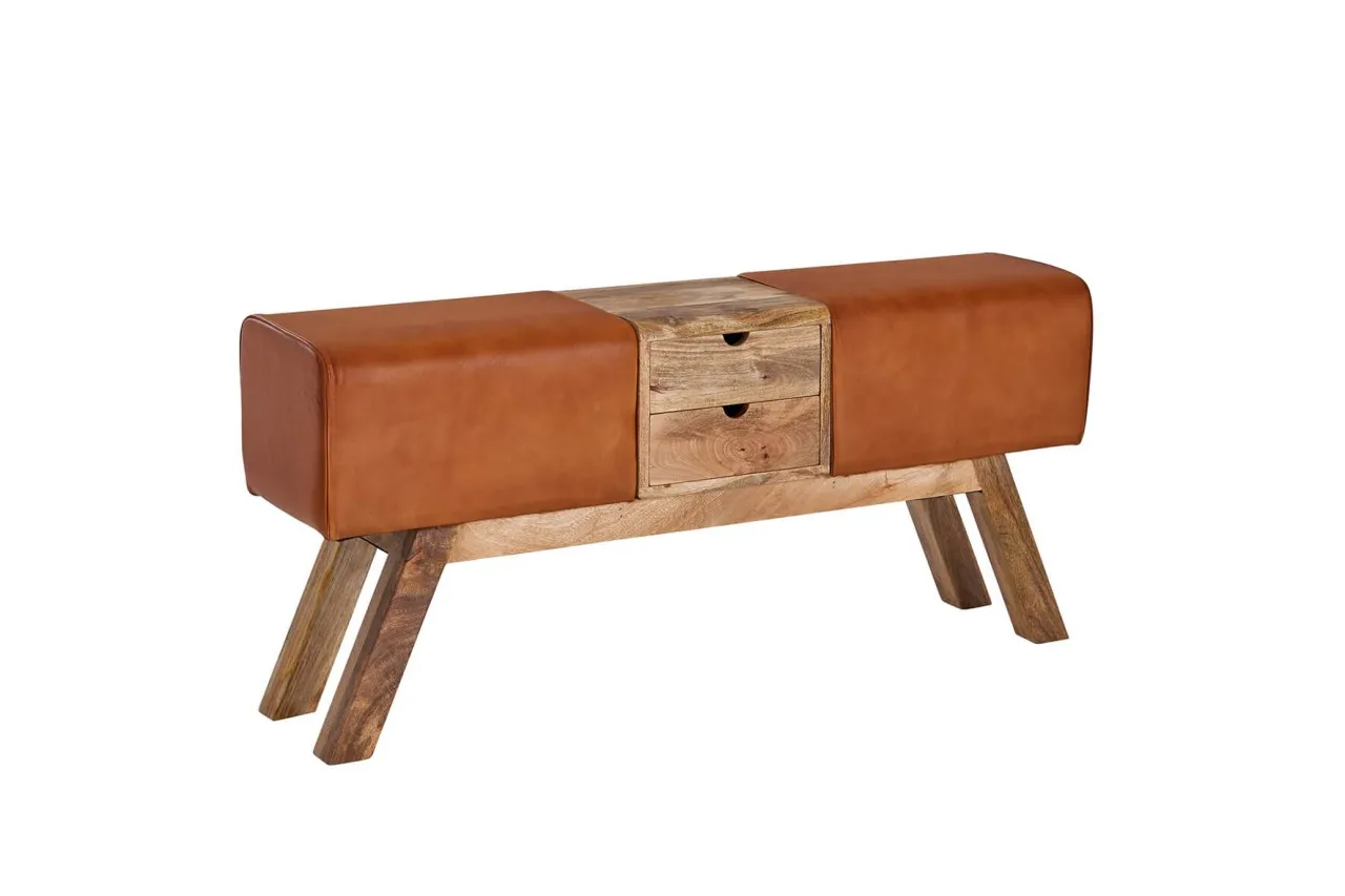tinkaro eckiger Sitzbank ANGE Ziegenleder/Mango Massivholz 013279 Turnbock Springbock Braun