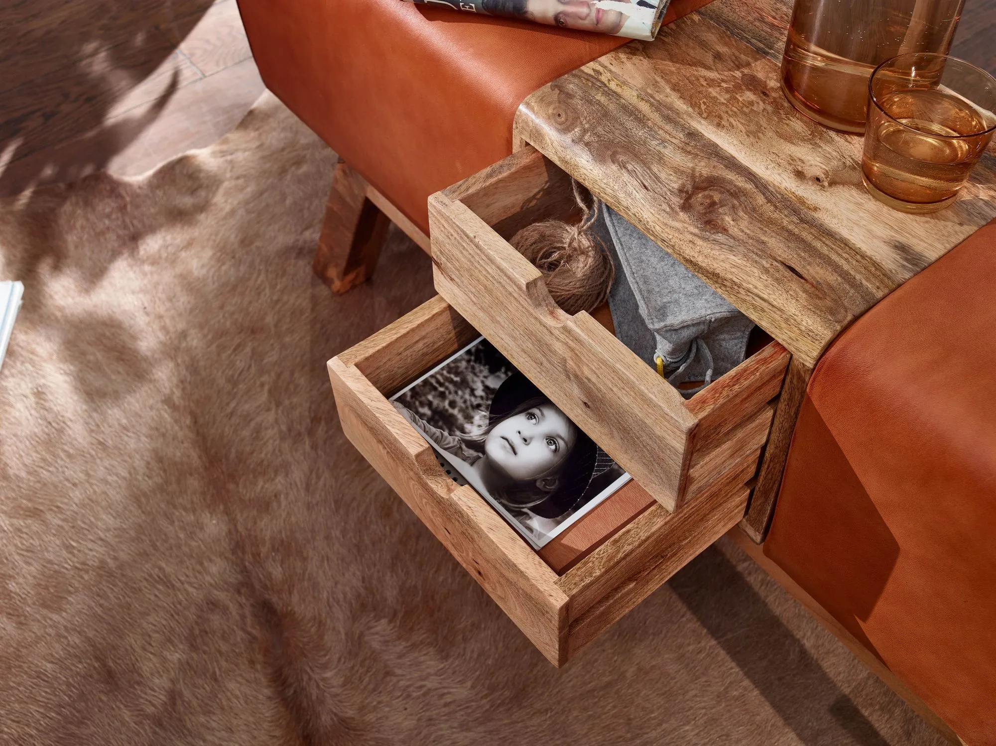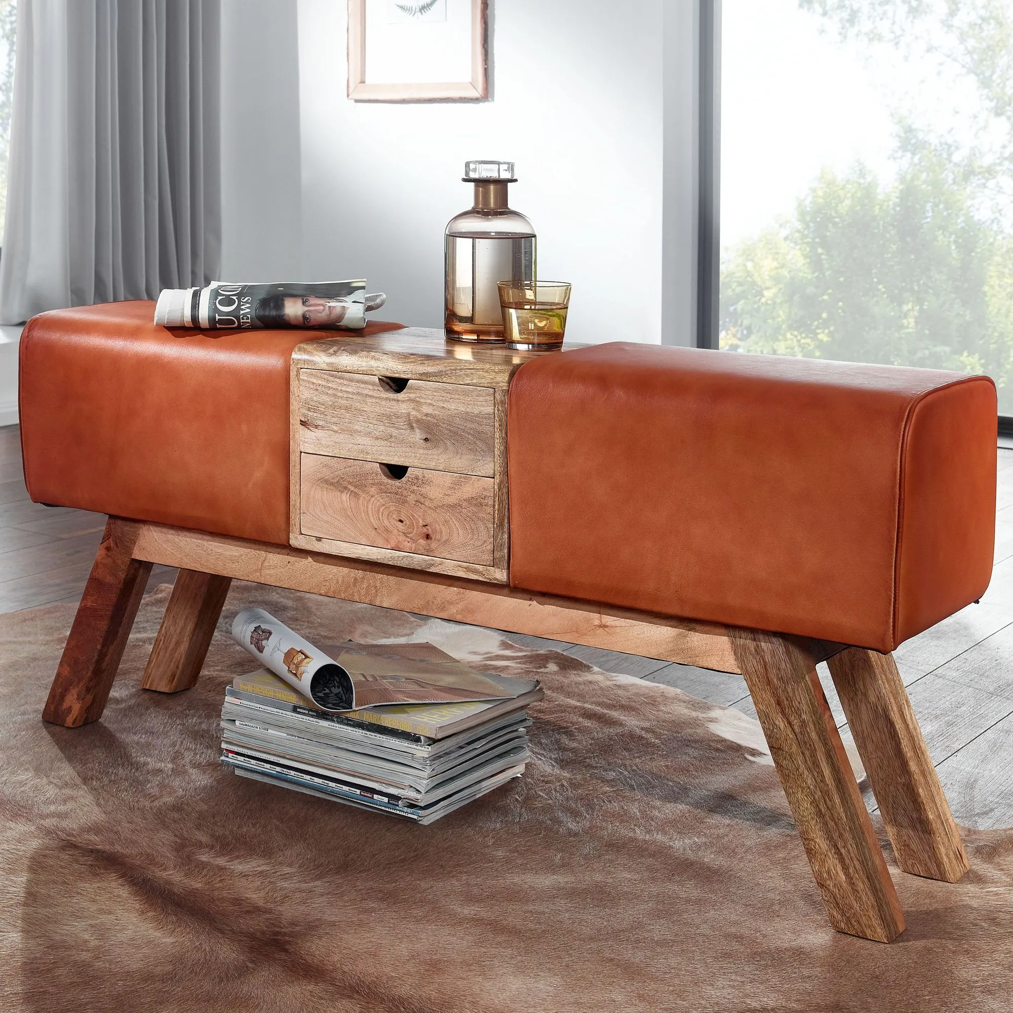 tinkaro Sitzbank eckig ANGE Ziegenleder/Mango Massivholz Turnbock Braun