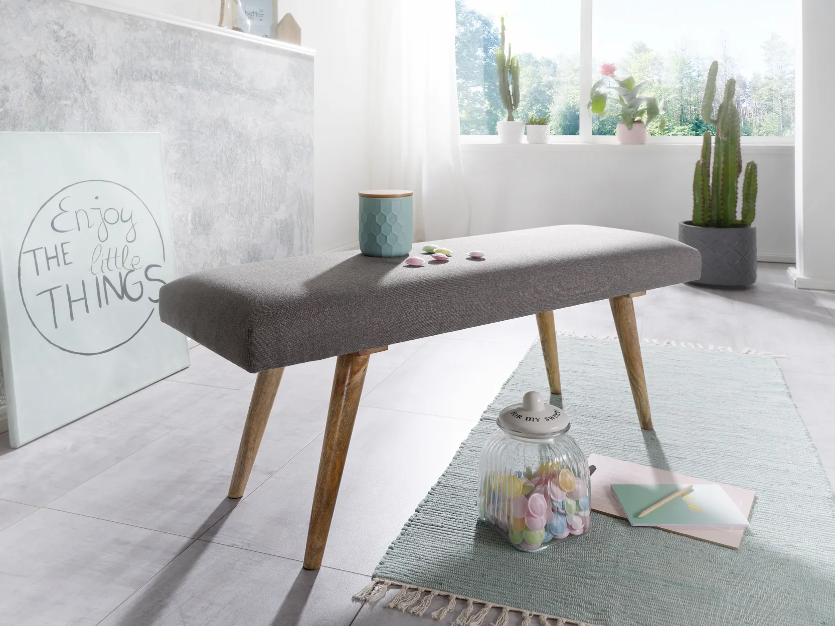 tinkaro Sitzbank rechteckig CATALINA Stoff / Massivholz Bank Grau