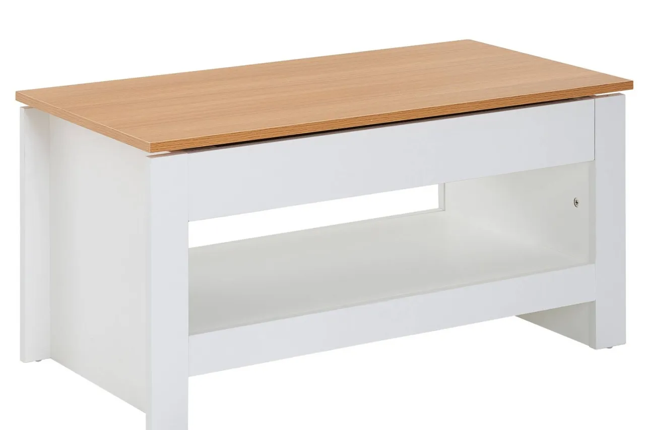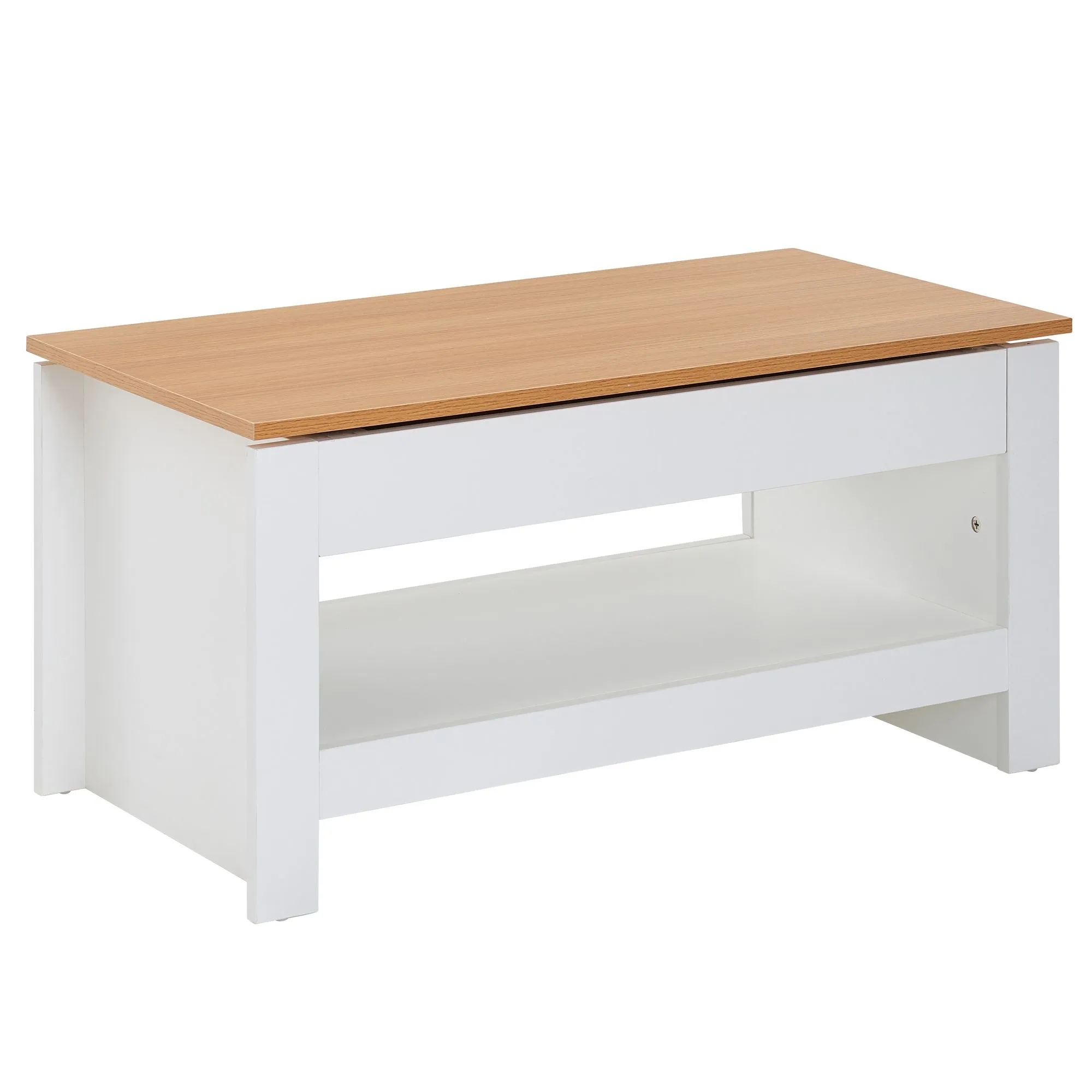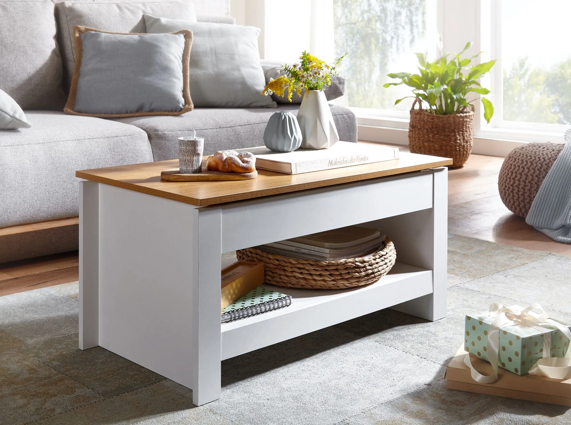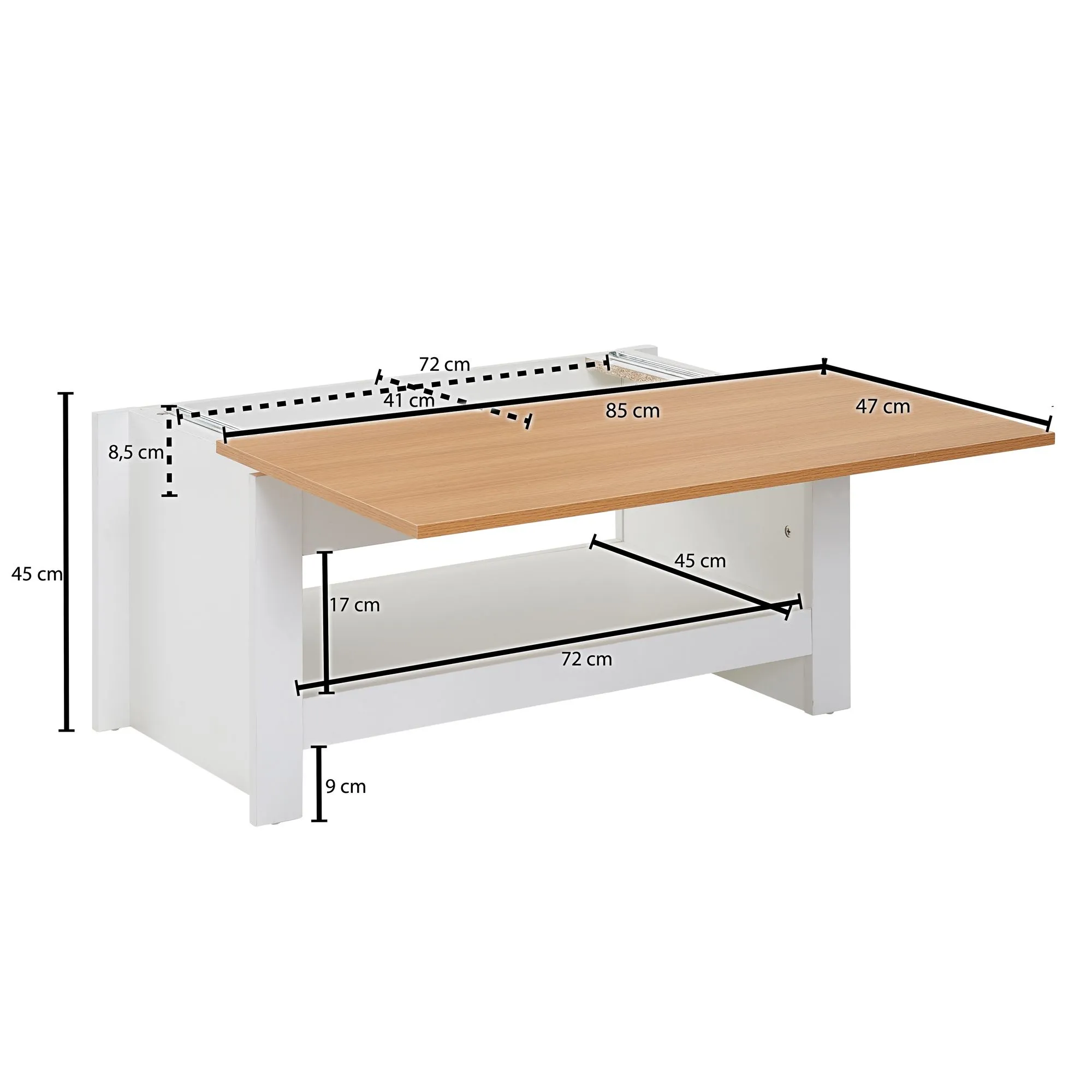 tinkaro Sofatisch eckig GREGA Holz Wohnzimmertisch mit Stauraum Weiß/Braun