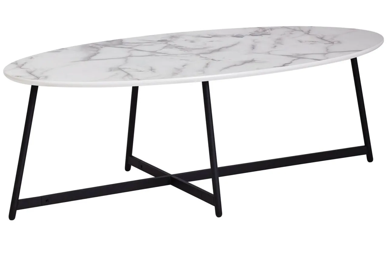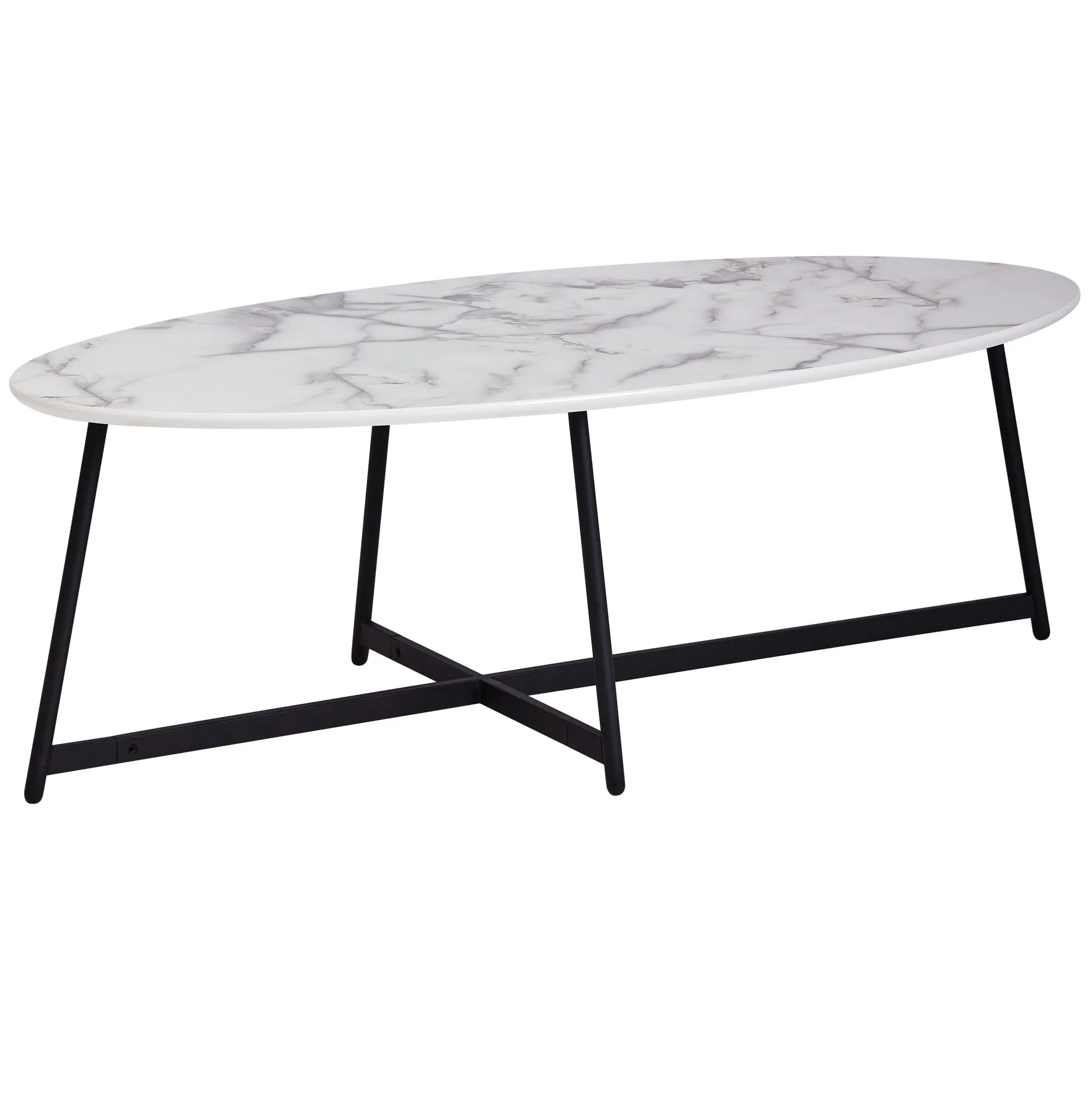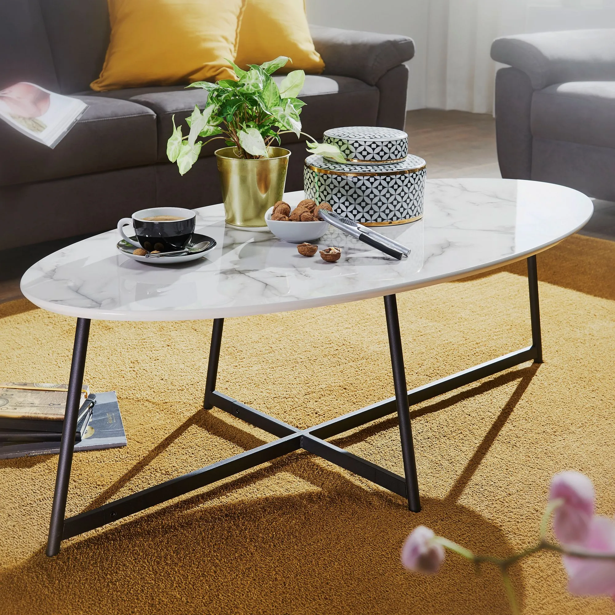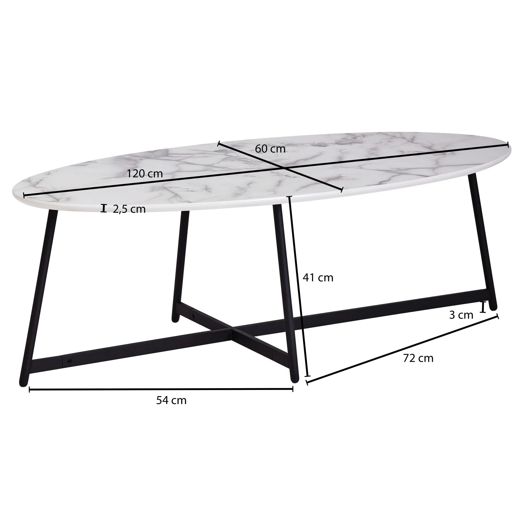 tinkaro ovaler Sofatisch DEMET Holz 013142 Couchtisch Wohnzimmertisch Weiß (Marmor-Hochglanz-Optik)